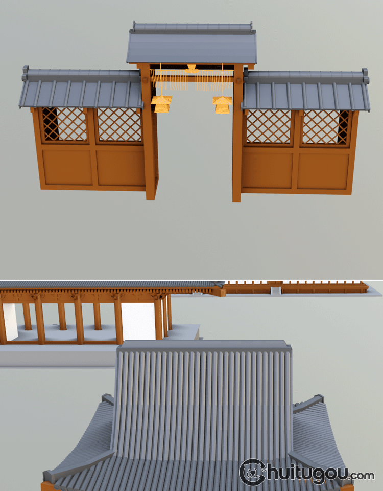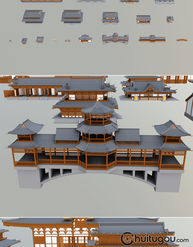 C4D亚洲唐朝日式古风建筑3D模型MAX灯笼凉亭拱桥城墙宫殿OBJ素材