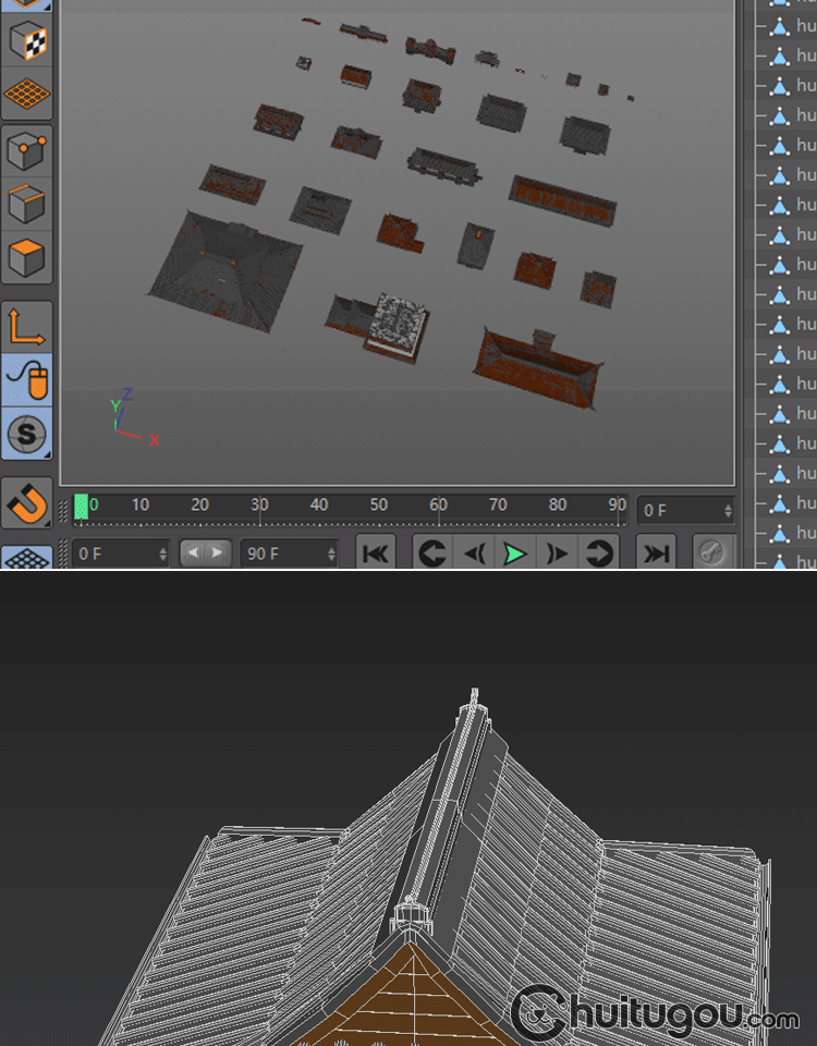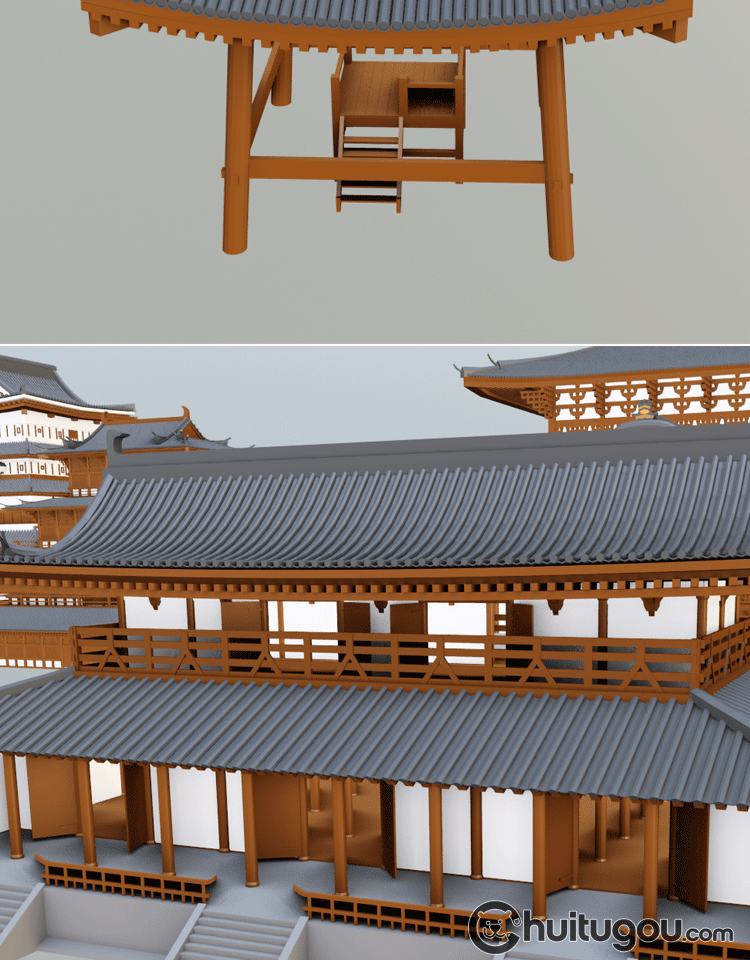 东方古建模块C4D唐朝风格建筑MAYA塔古风走廊宫殿楼宇城墙城楼OBJ