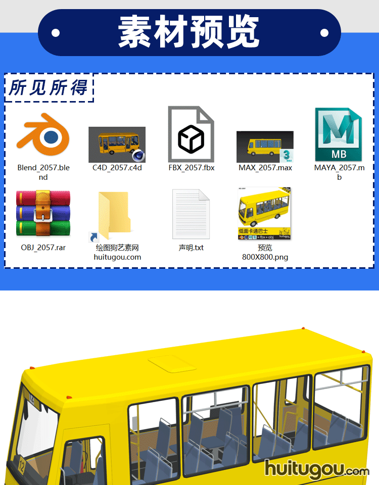卡通 低面巴士MAX汽车MAYA公交车C4D公车Blender FBX OBJ素材文件