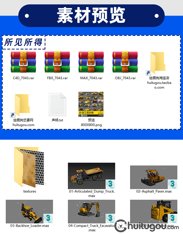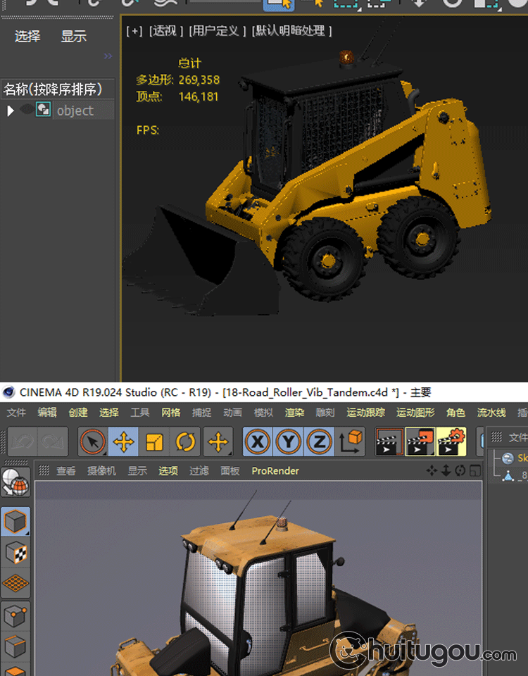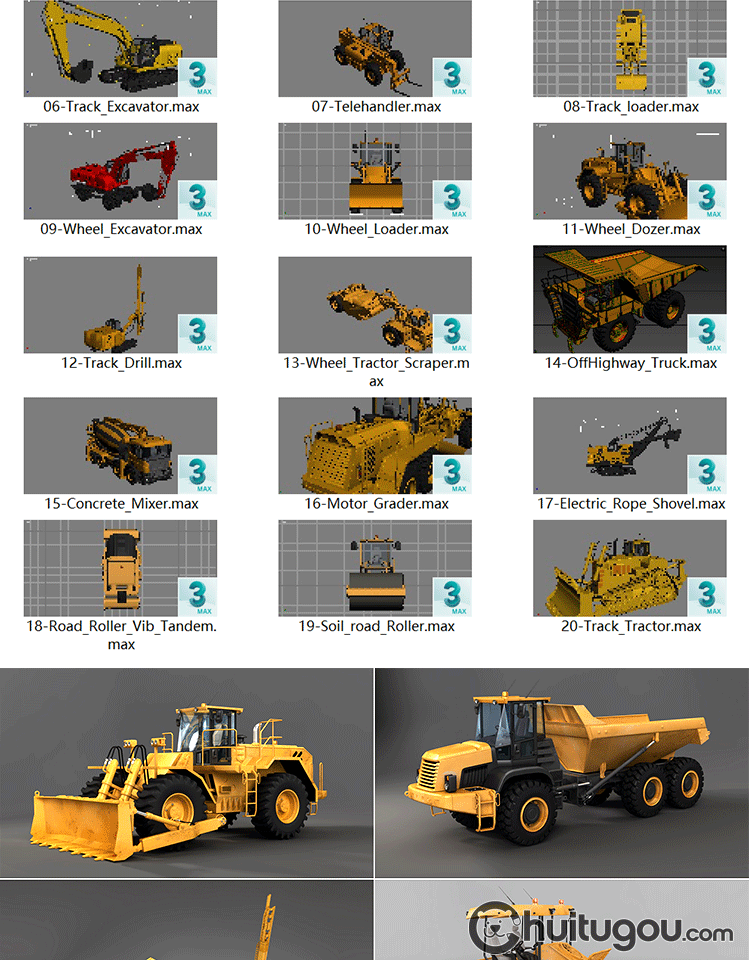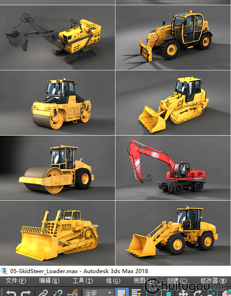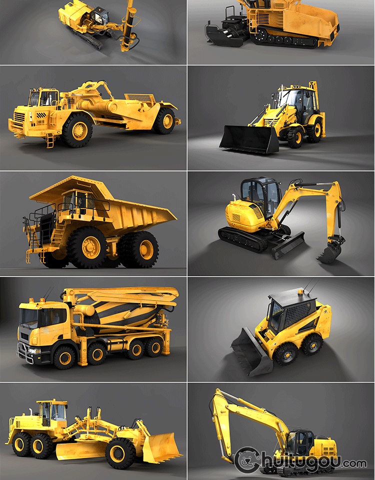 重型机器C4D工程车MAX挖掘机摊铺机叉车拖拉机推土机搅拌机压路机