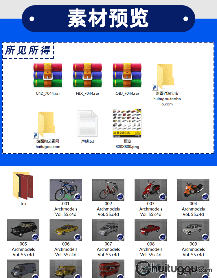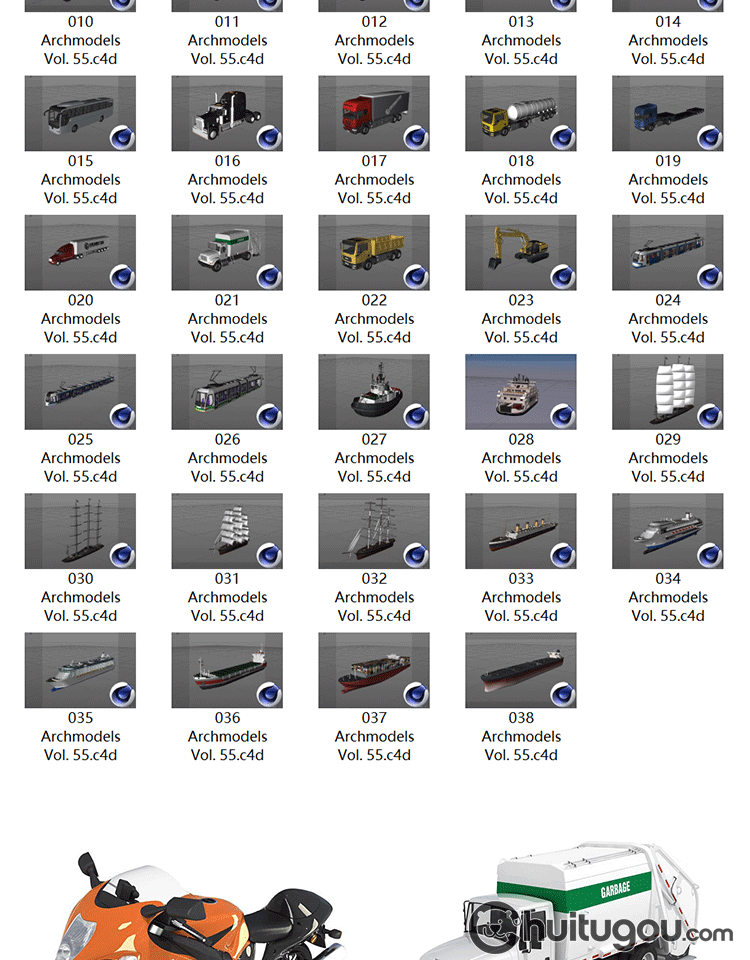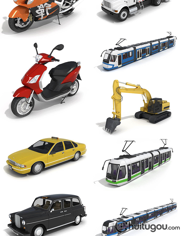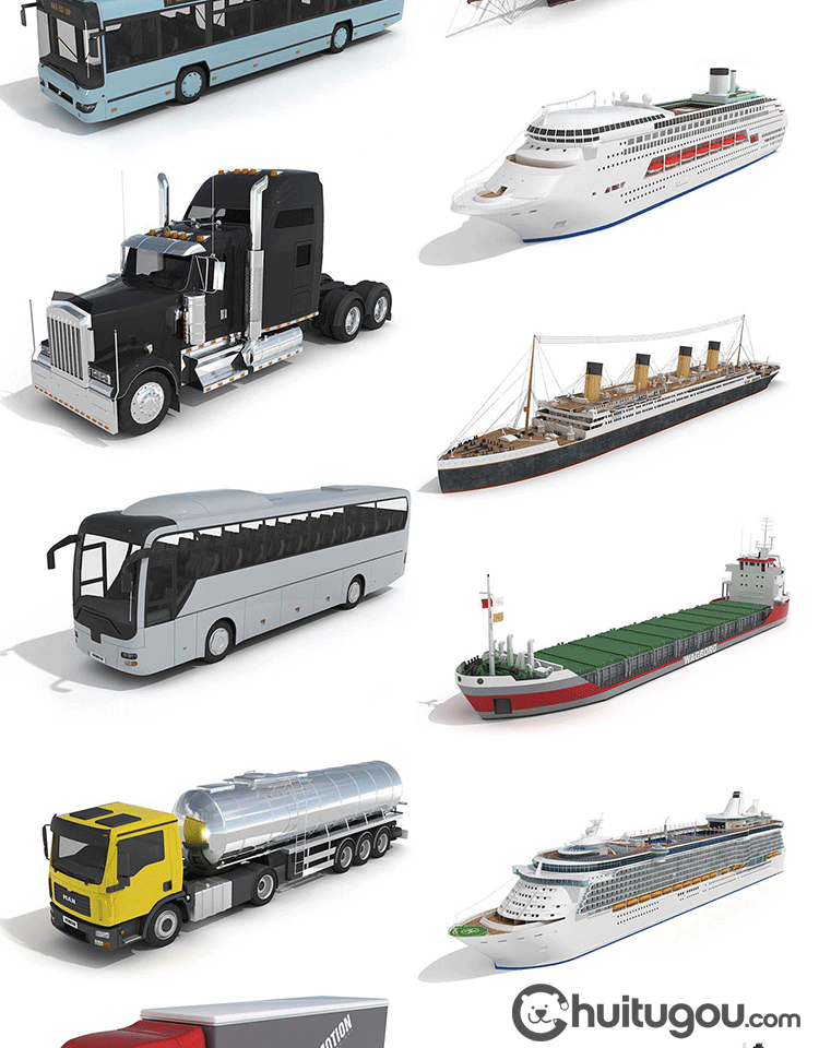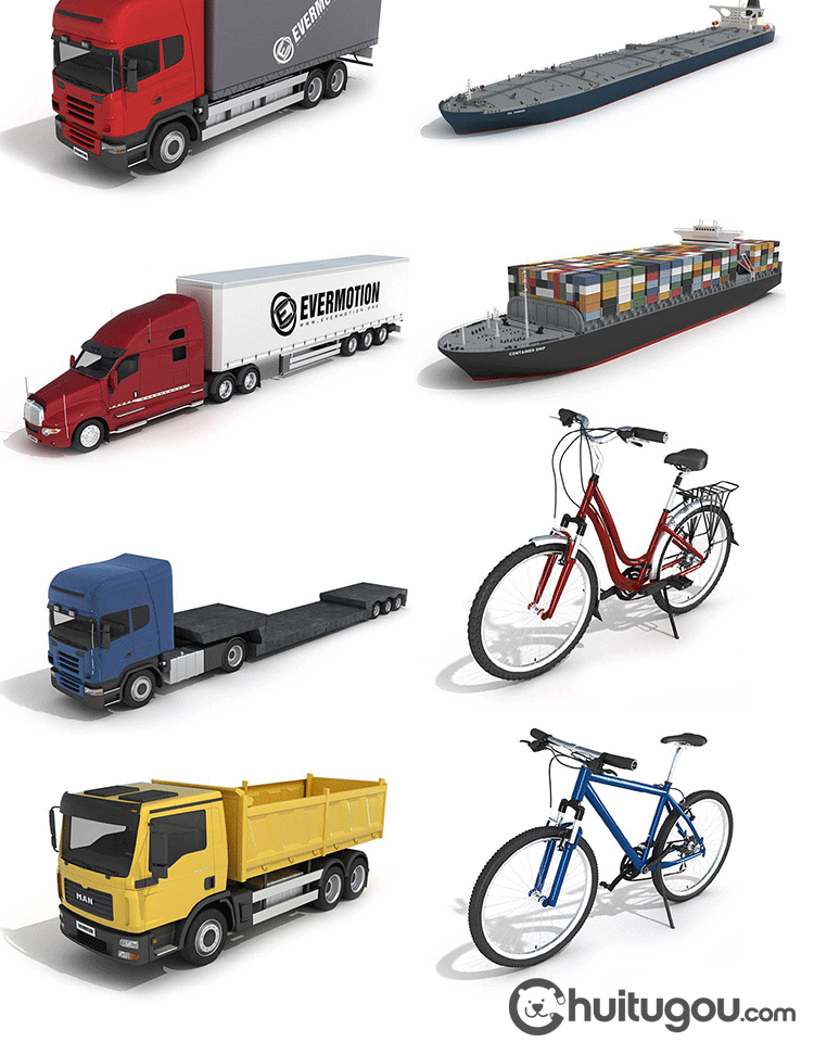 交通工具模型C4D大巴车高铁货车货轮游轮电车摩托自行车3D素材OBJ