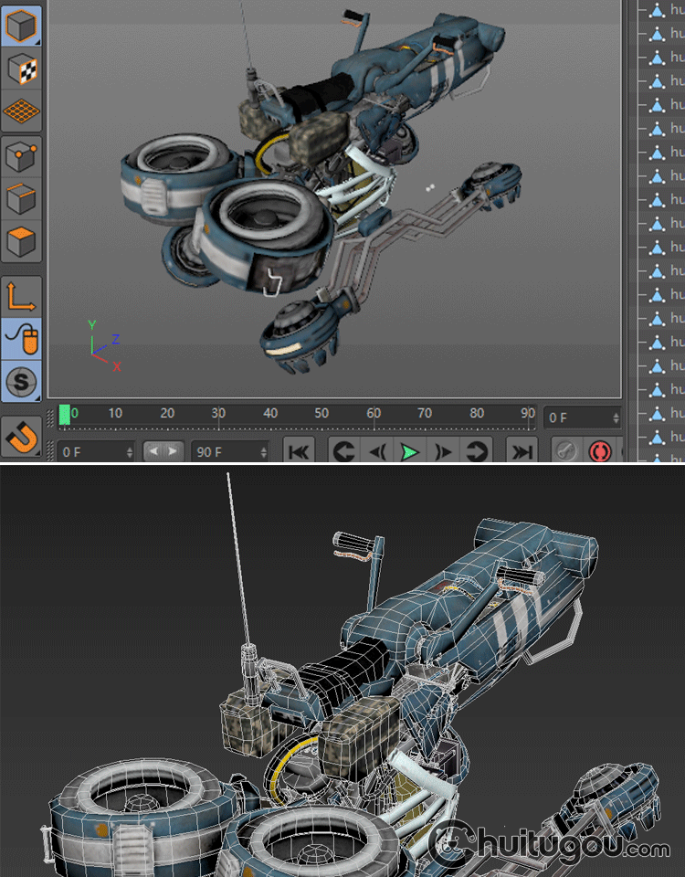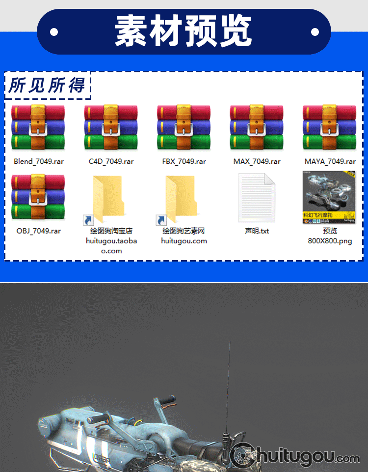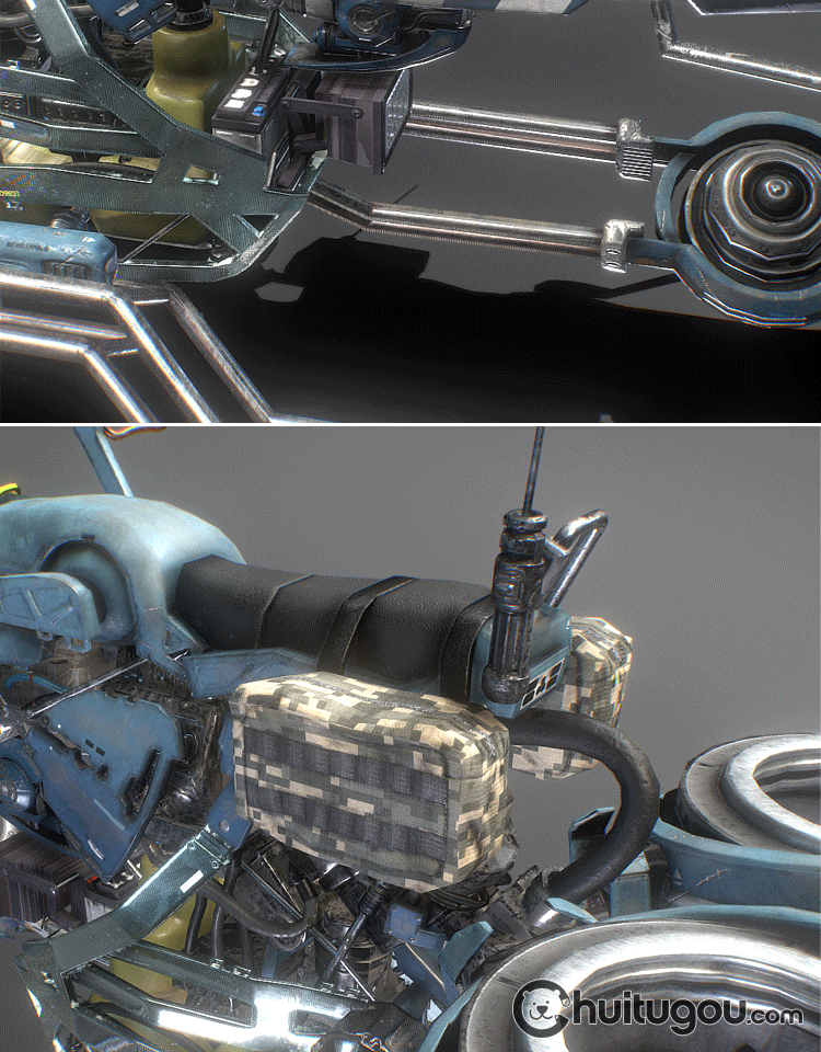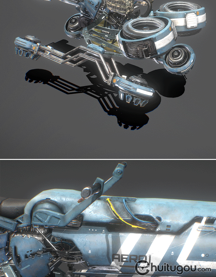 PBR风格科幻飞行摩托车Blender未来概念飞行器C4D写实做旧MAX素材