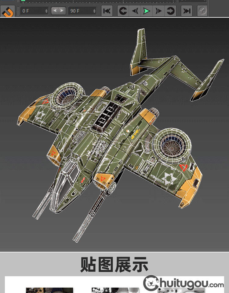 次时代风格战斗机模型C4D机甲机械低模MAX空中战机3D设计素材OBJ