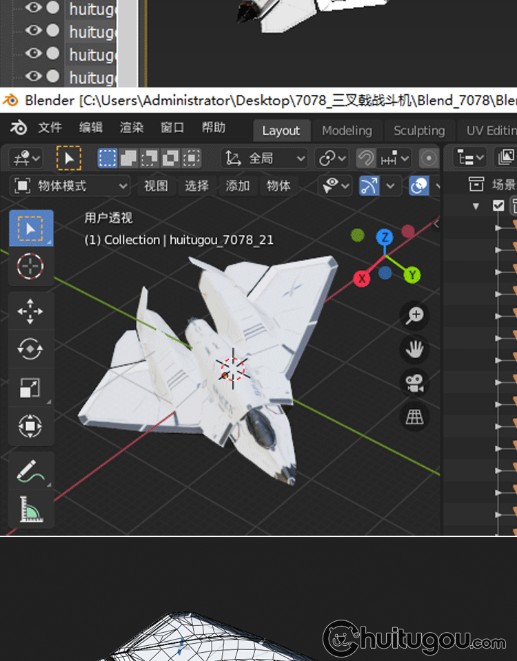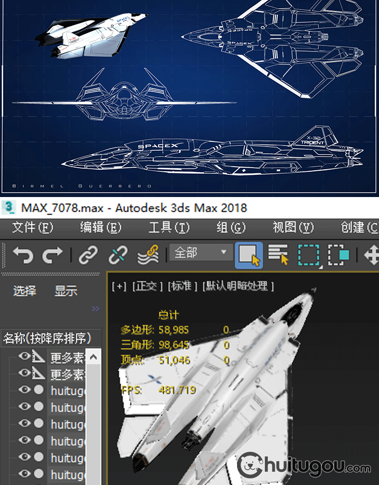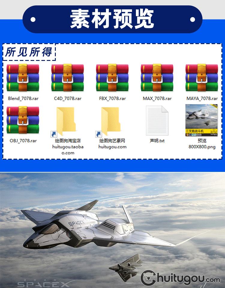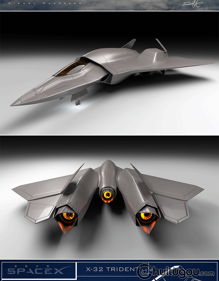 PBR三叉戟星际战斗机3D模型C4D科幻战争轰炸机MAX建模设计素材OBJ