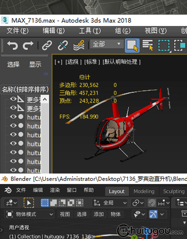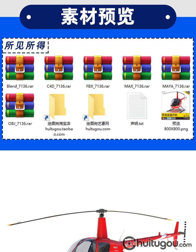写实PBR风格 直升机Blend飞机模型中模C4D建模MAYA渲染3D素材MAX