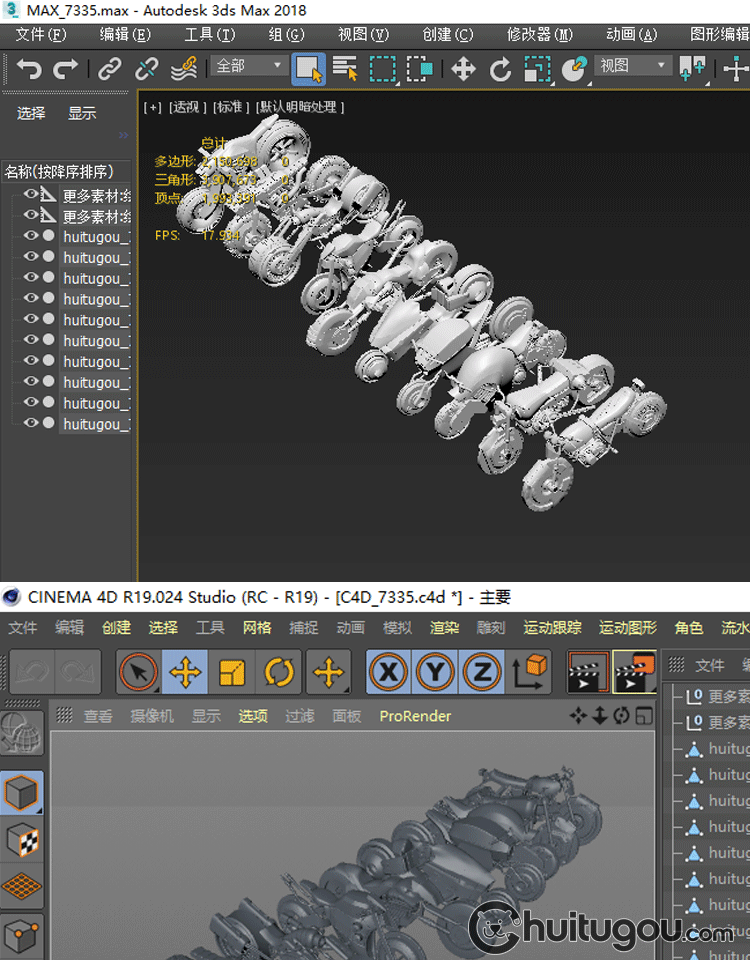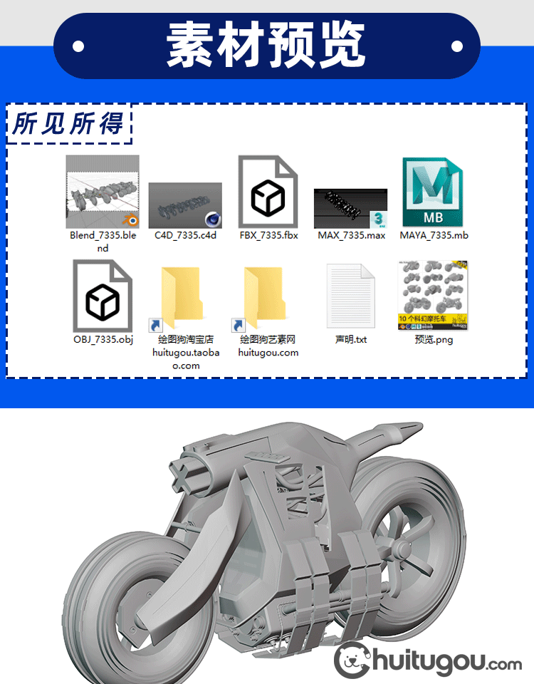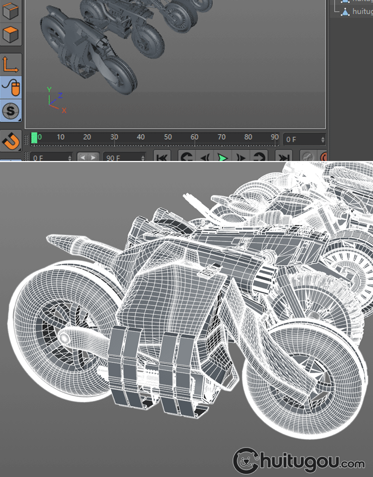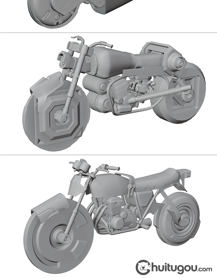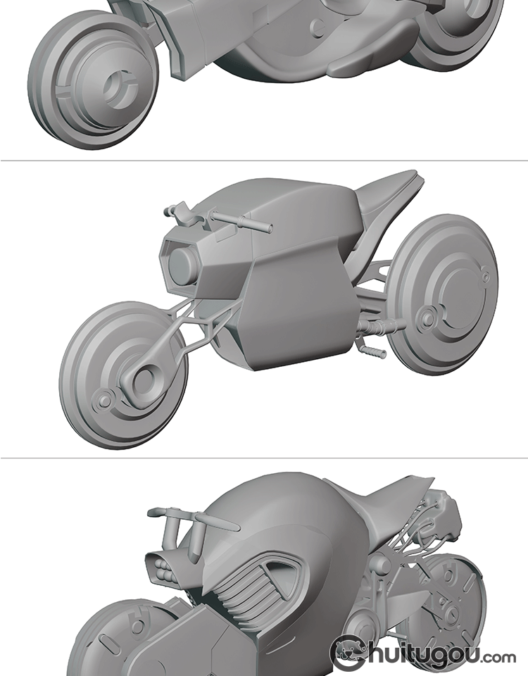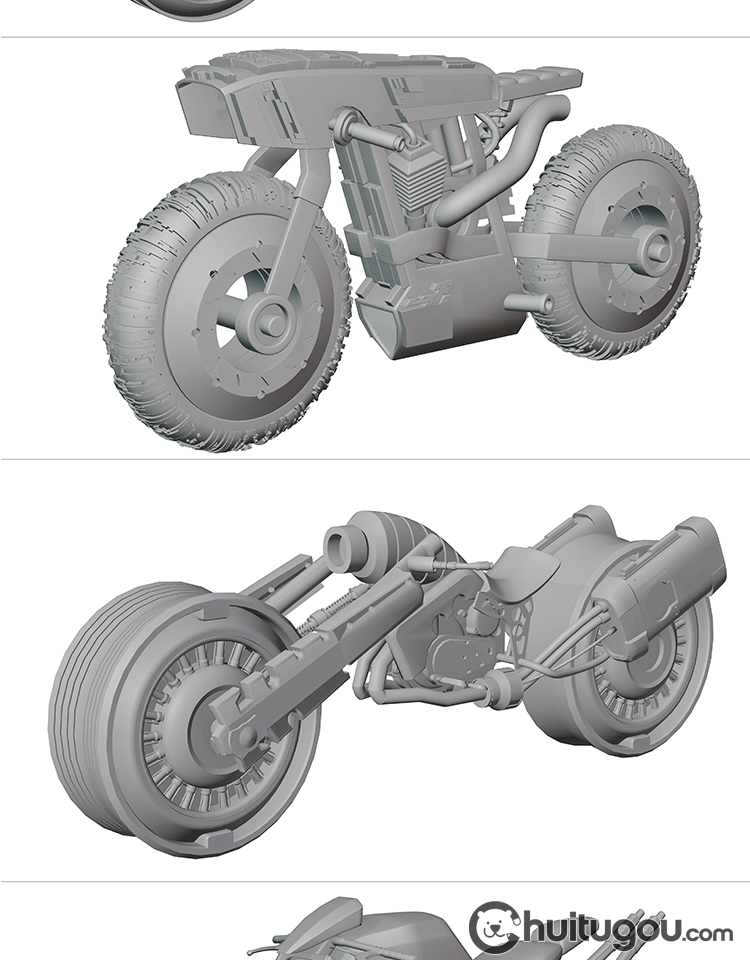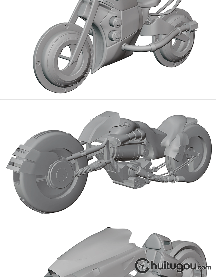 C4D赛博朋克摩托车3D模型MAX科幻机车obj格式fbx建模ZB雕刻素材