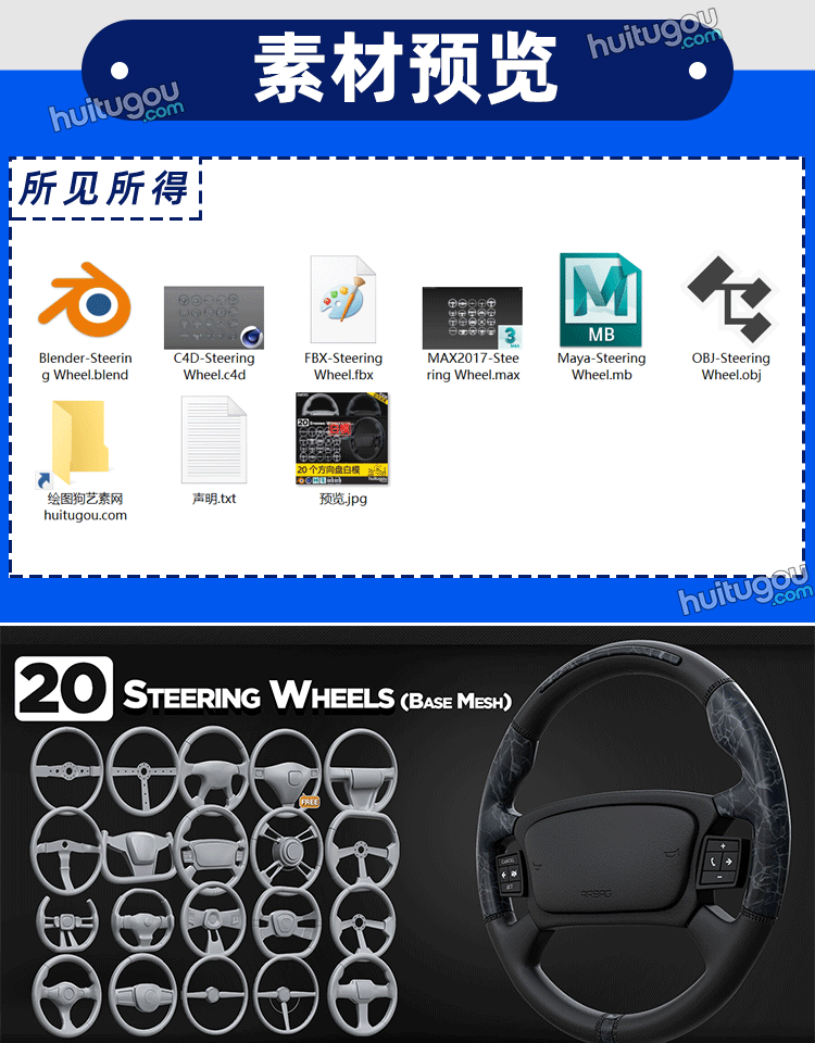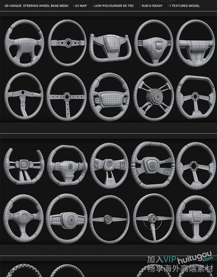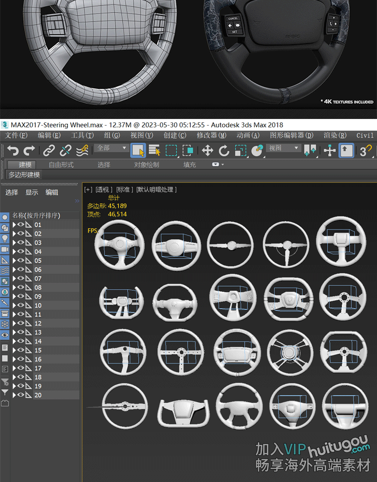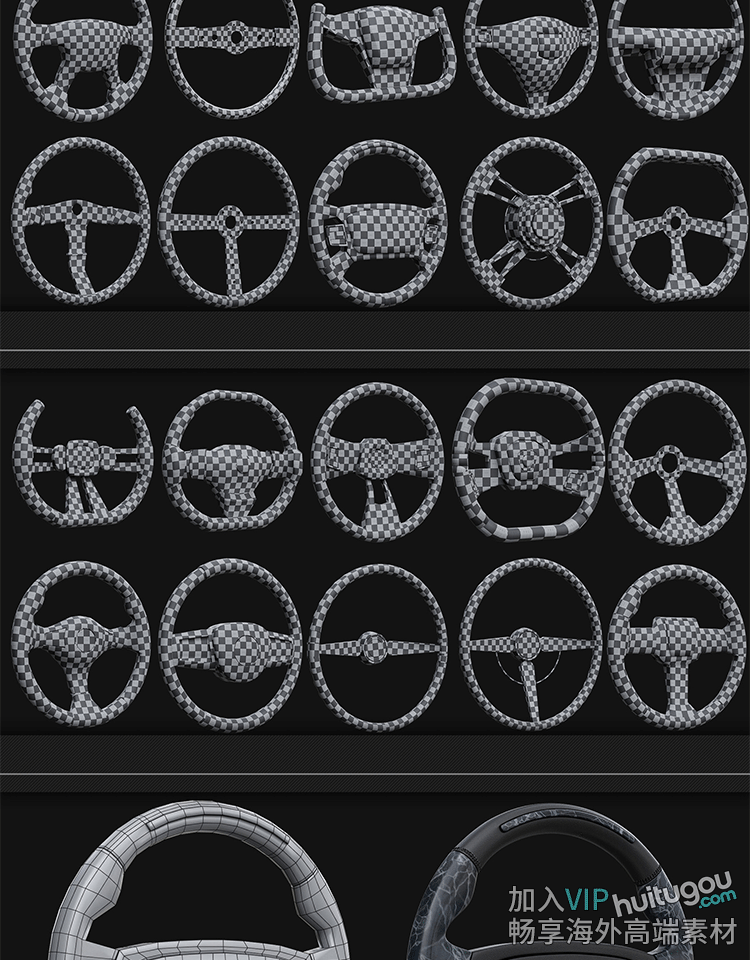 C4D汽车方向盘3D模型MAX素材FBX基础网格OBJ送SP绘制纹理演示教程