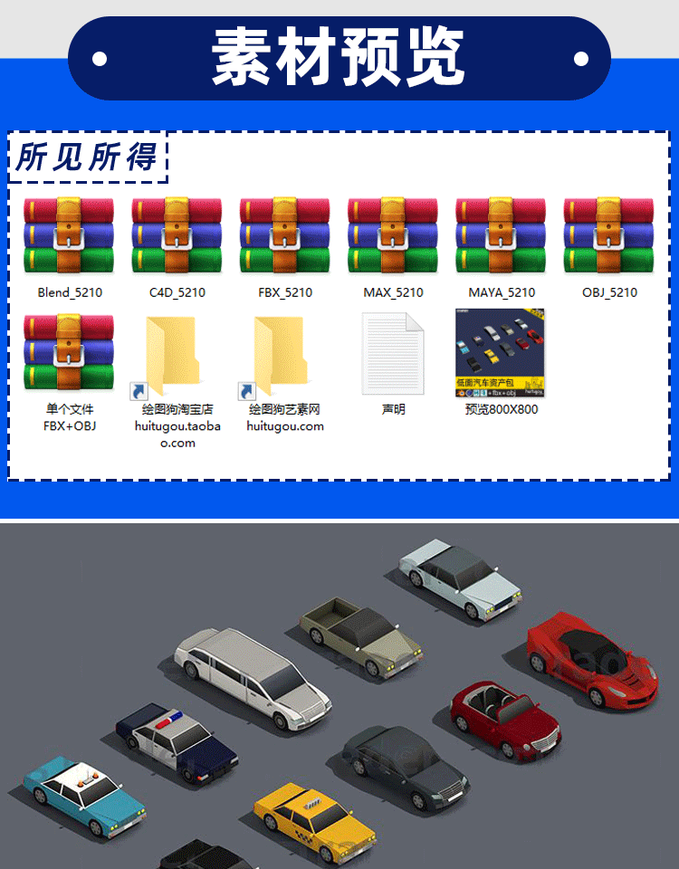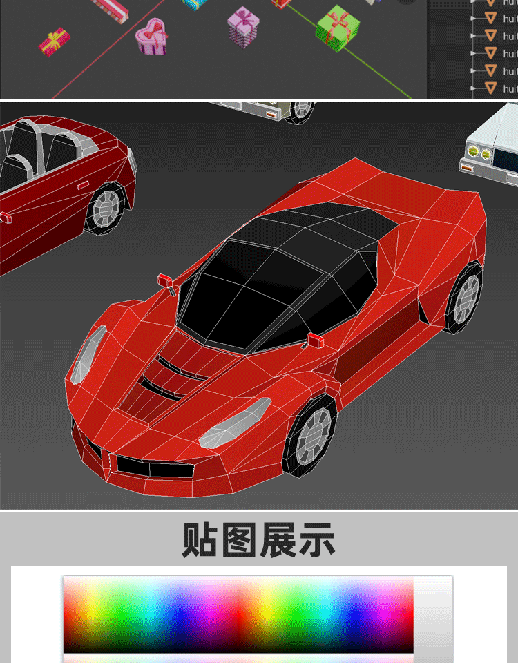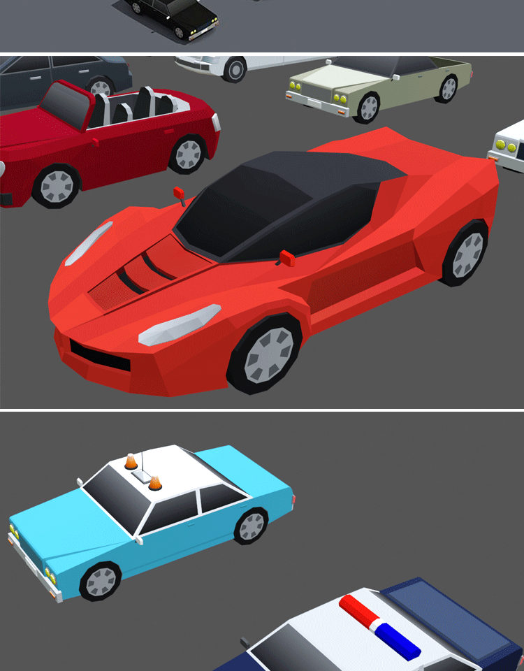 低面3D汽车模型MAX卡通车辆C4D豪华轿车皮卡车警车跑车出租车MAYA