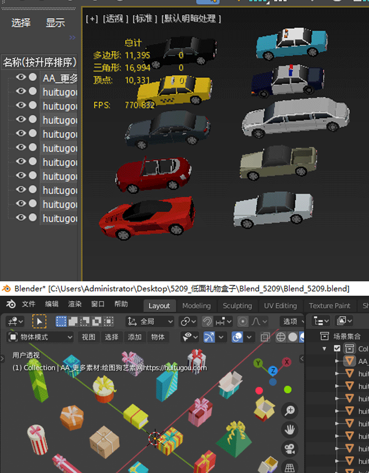 低面礼品盒模型C4D卡通礼盒Blend礼物图标3D素材源文件OBJ格式FBX