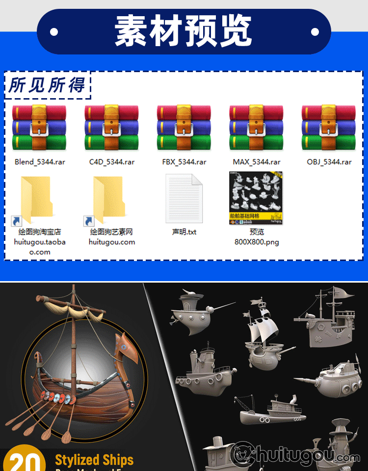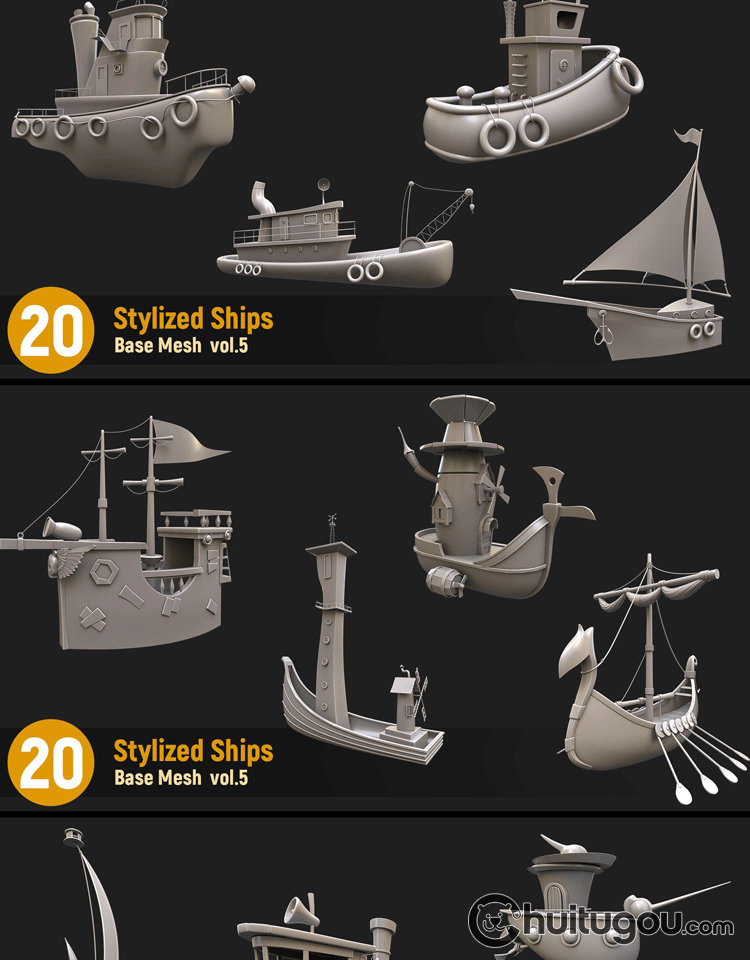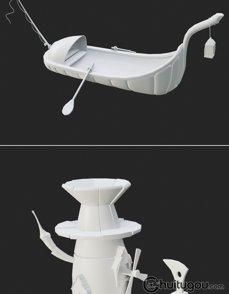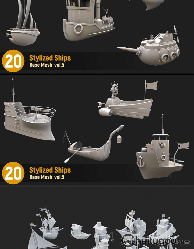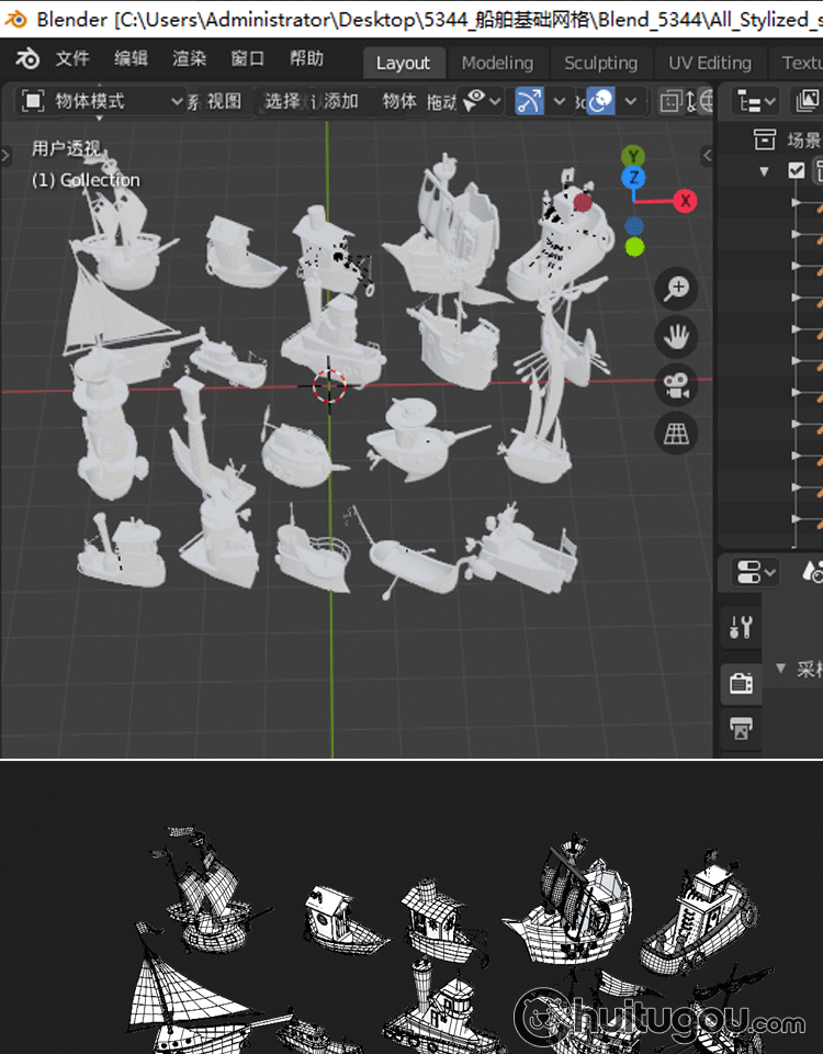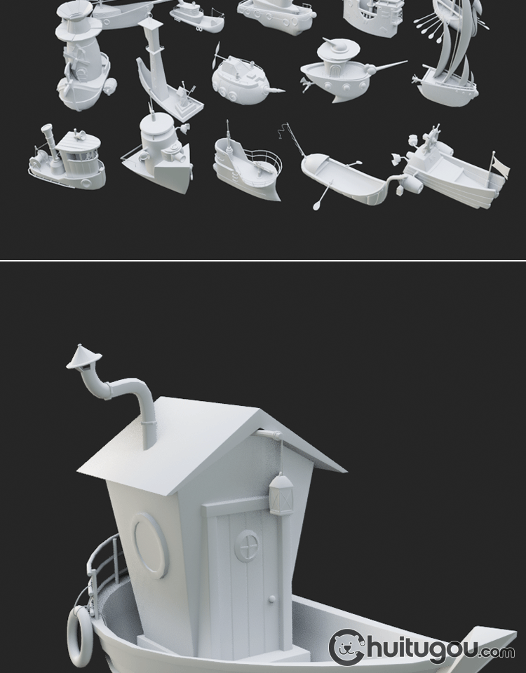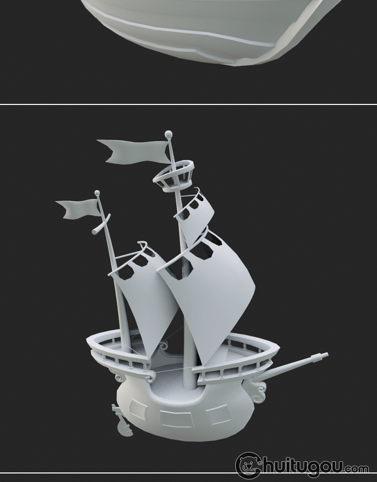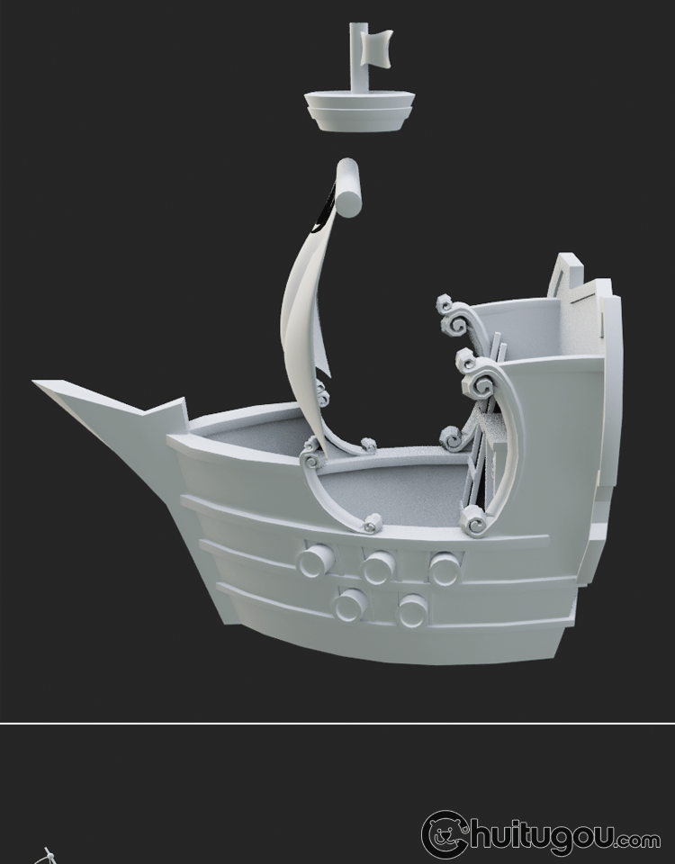 Q版可爱小船3D模型C4D中世纪船舶船只海盗船Blend白模基础网格OBJ