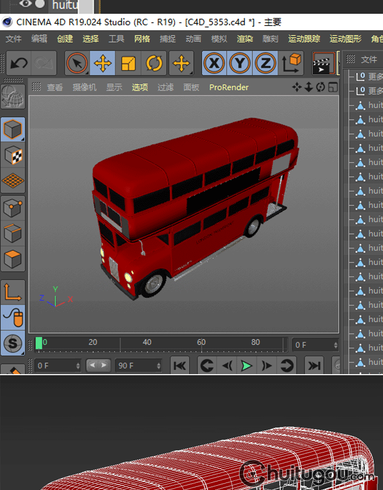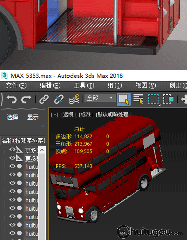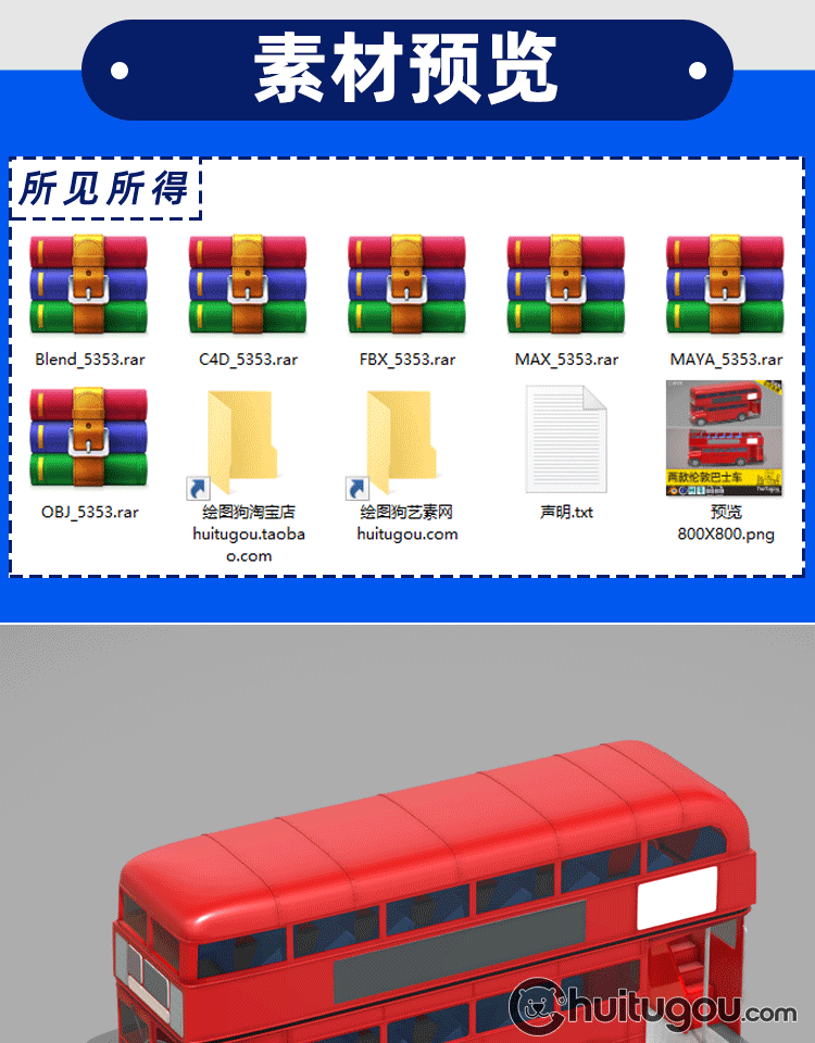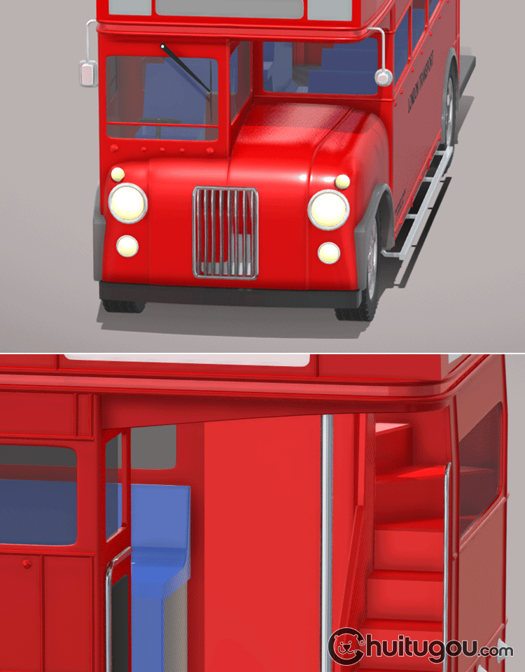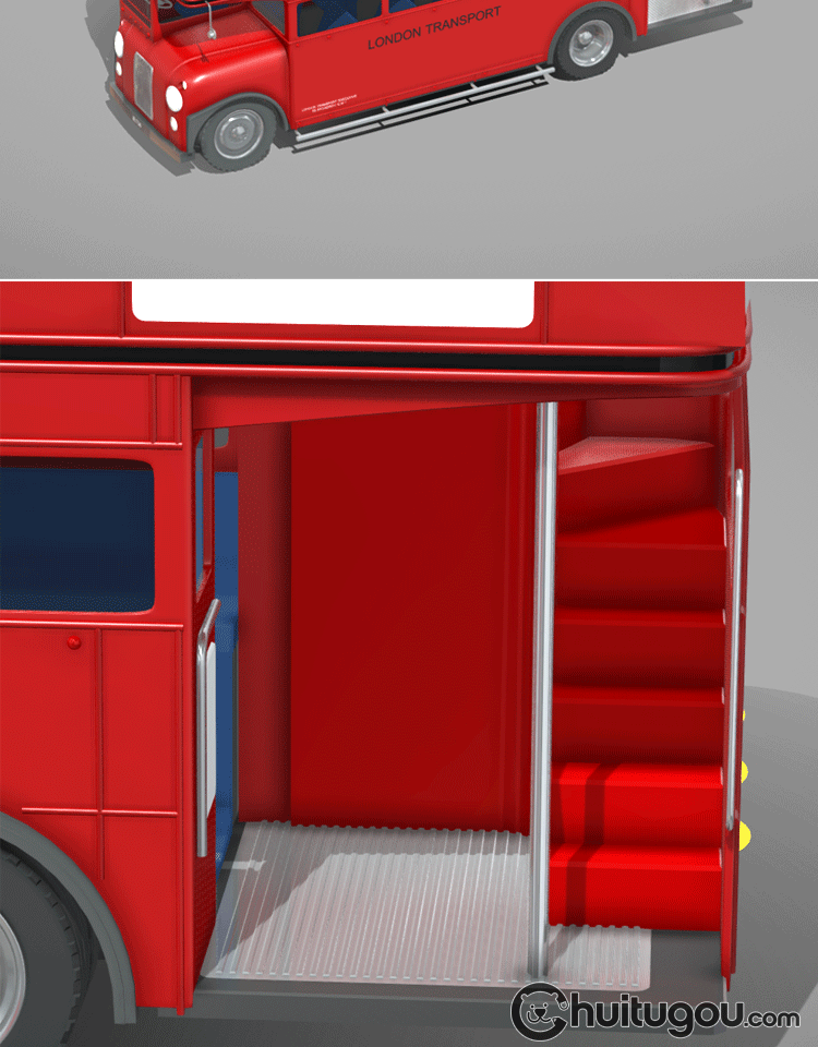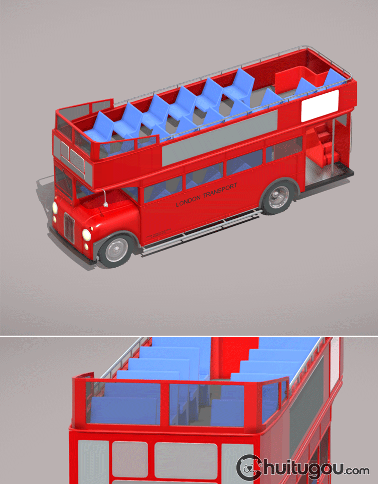 伦敦巴士车3D模型C4D敞篷观光车Blender双层公交车MAX公共汽车OBJ