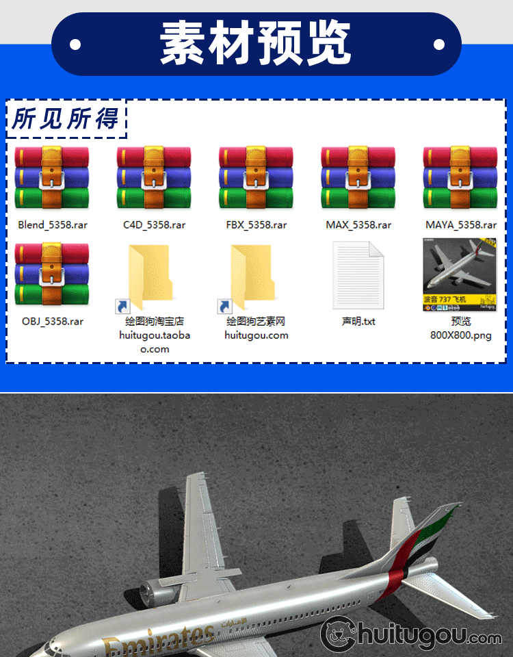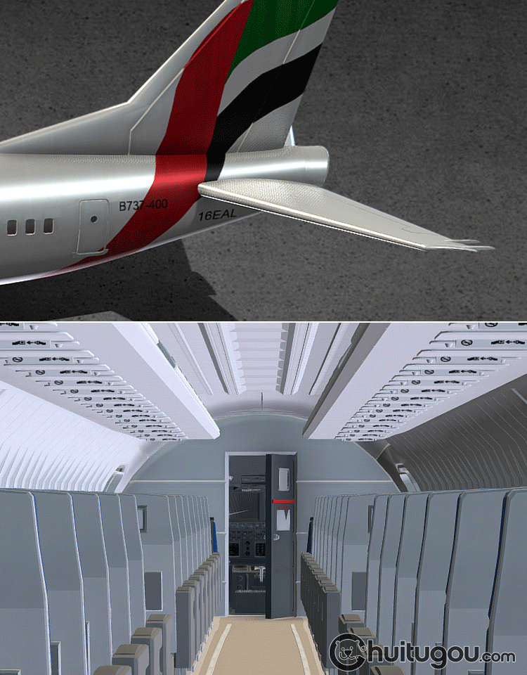 卡通C4D波音737飞机模型Blend阿联酋航空客舱座椅驾驶舱3D素材OBJ