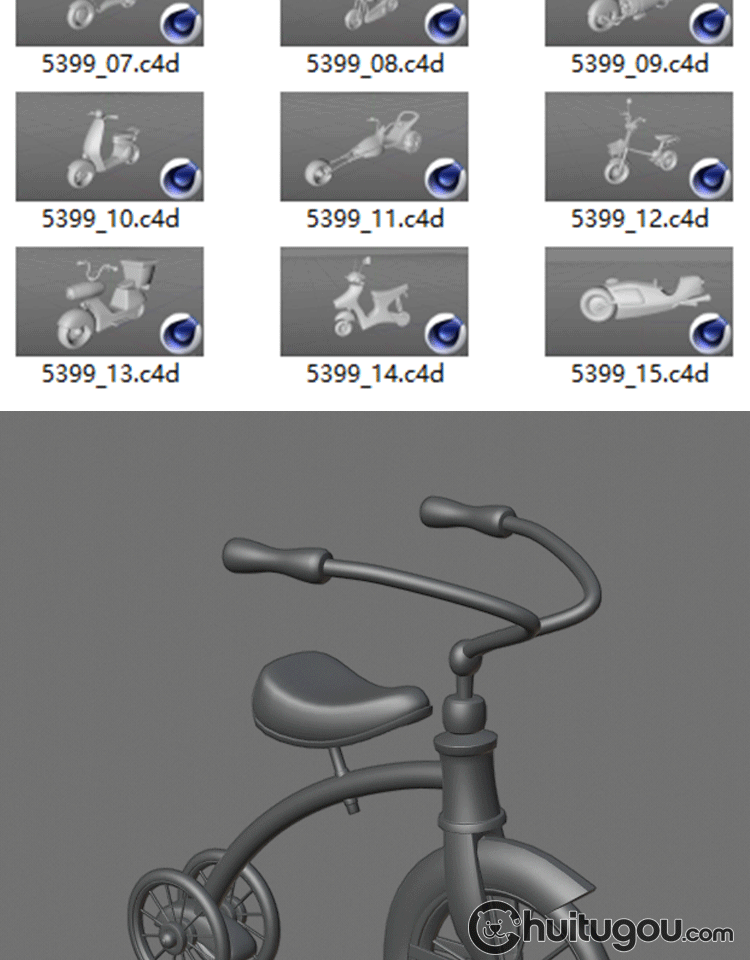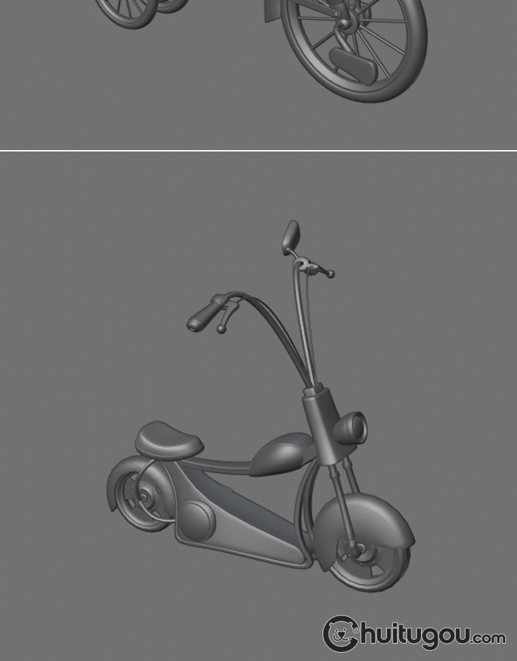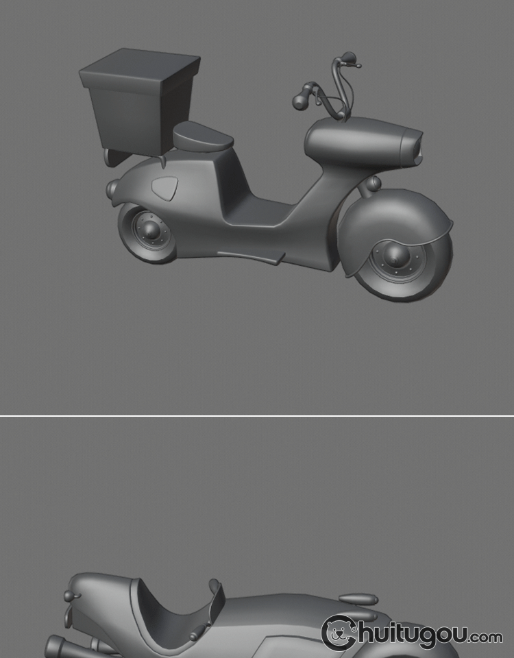 Q版 可爱卡通摩托车C4D低面交通工具MAX白模MAYA三维建模素材OBJ
