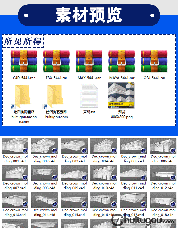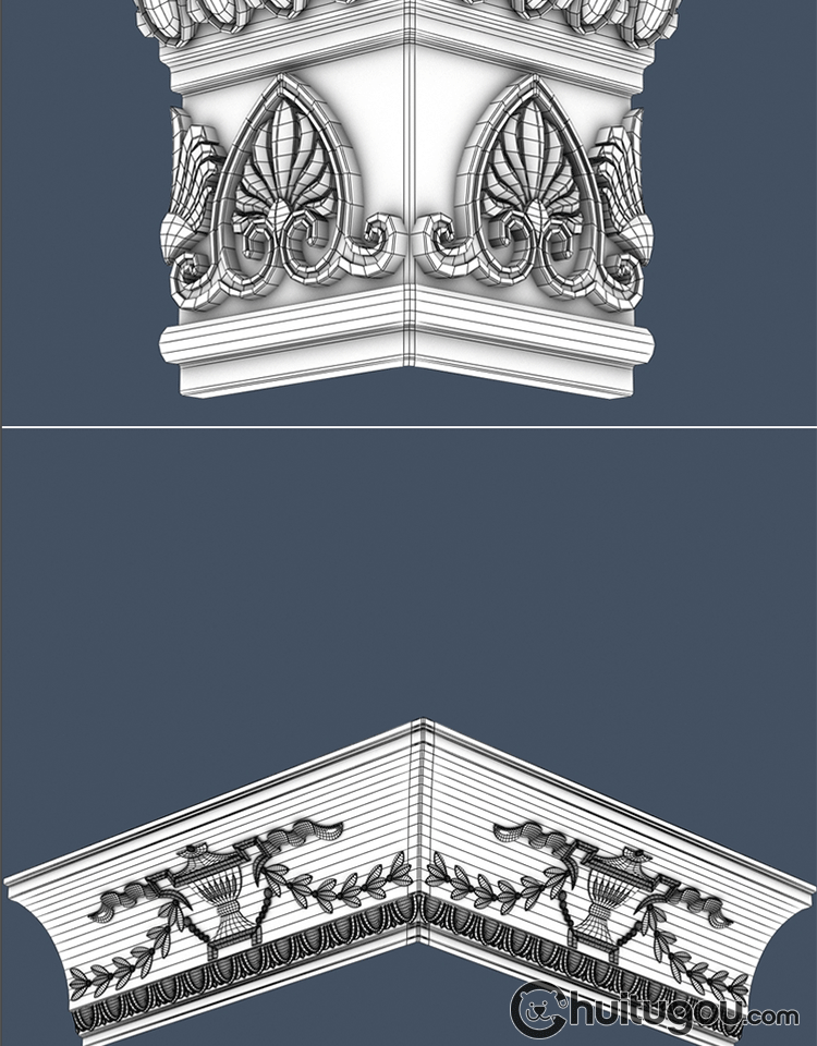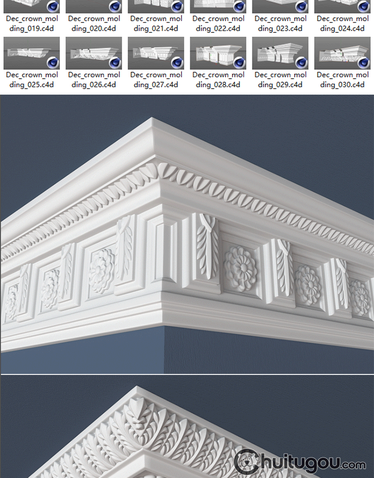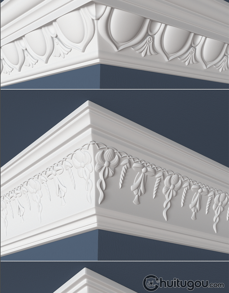 30款 欧式建筑角线3D模型MAYA石膏线雕花角花C4D建模渲染素材OBJ