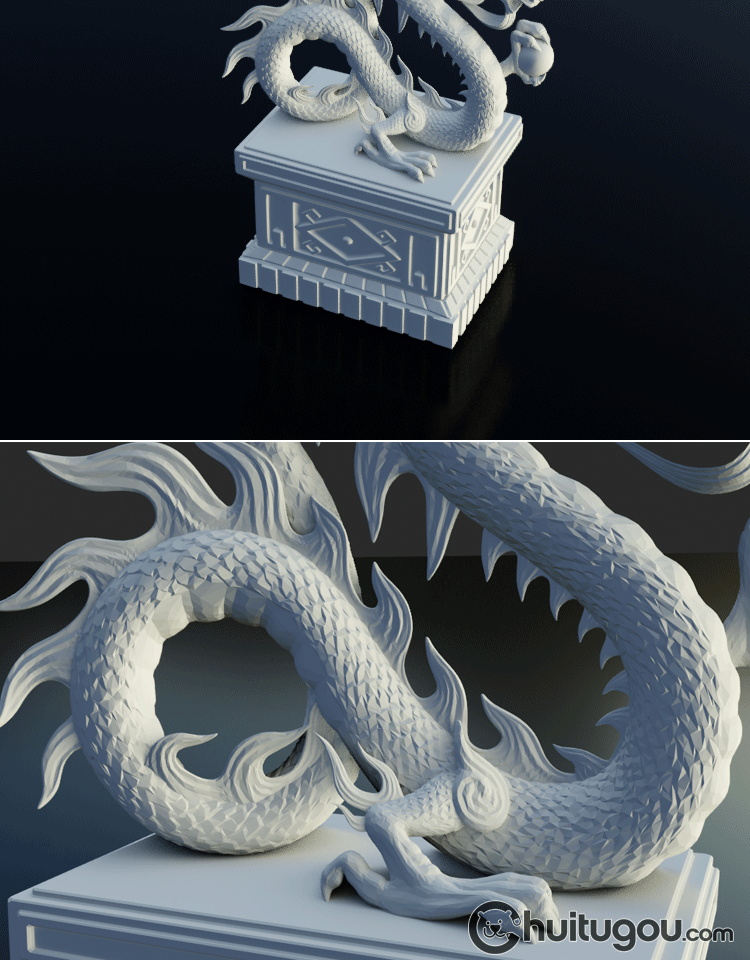 C4D国风元素3D模型青龙雕塑Blender白膜MAYA三维建模雕刻素材OBJ