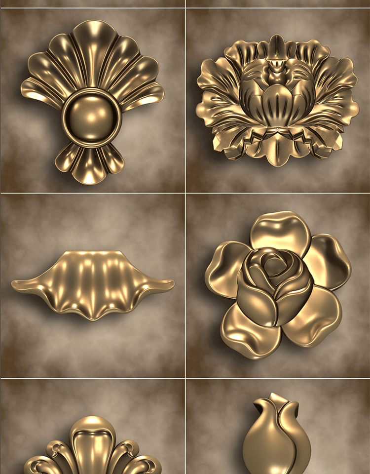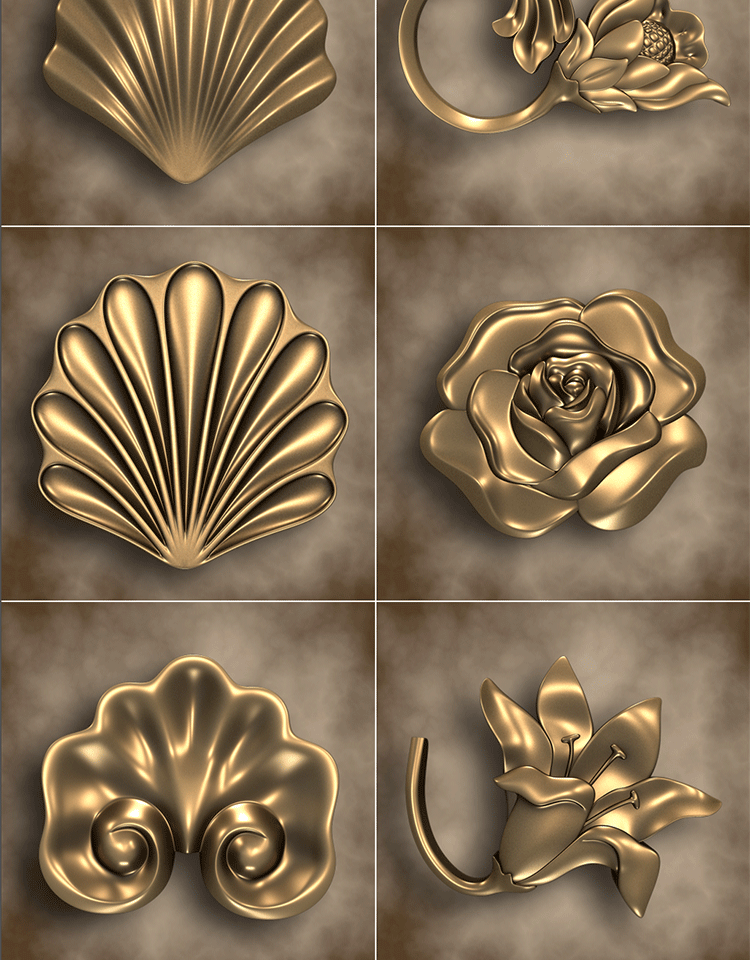 C4D欧式建筑装饰花纹角花浮雕雕花ZBrush雕刻ZB笔刷OBJ格式3D模型