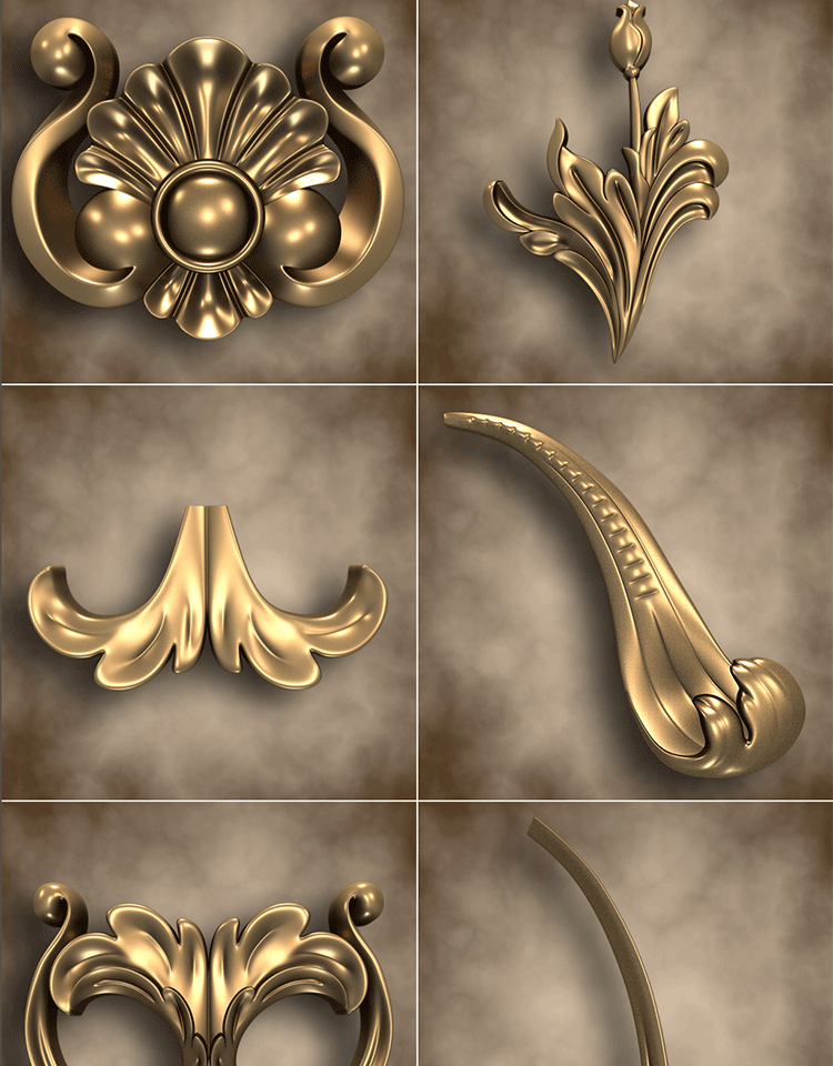Zbrush欧式建筑家具装饰雕花角花IMM笔刷ZB画笔FBX OBJ花纹3D模型