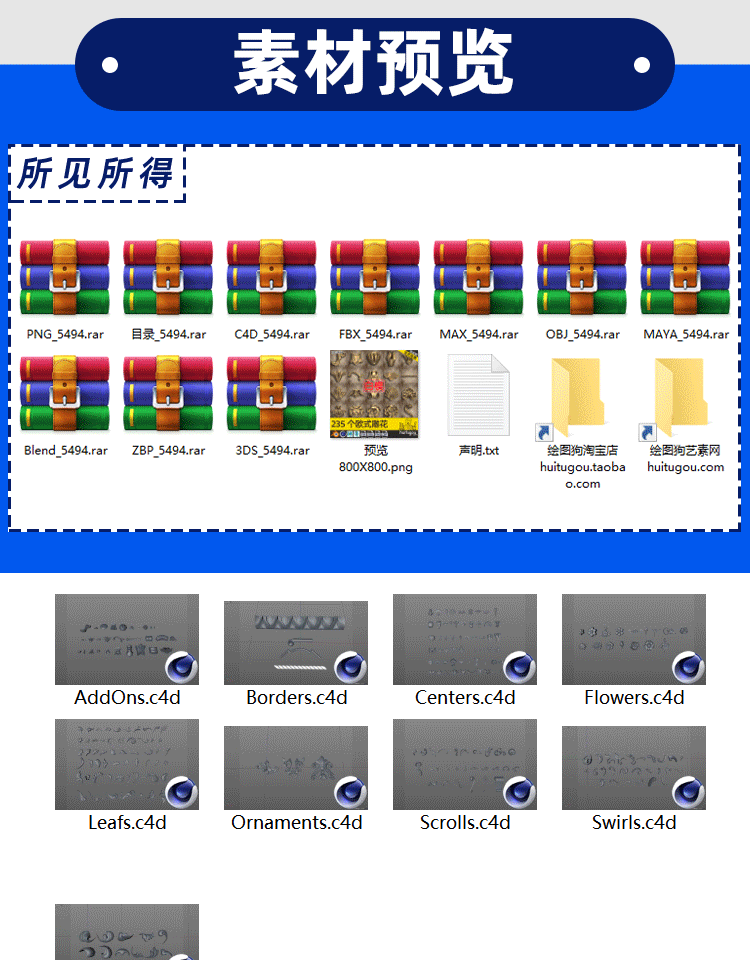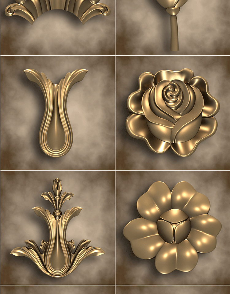 C4D欧式装饰花纹雕花浮雕3D模型ZBP笔刷alpha贴图PSD格式PNG素材