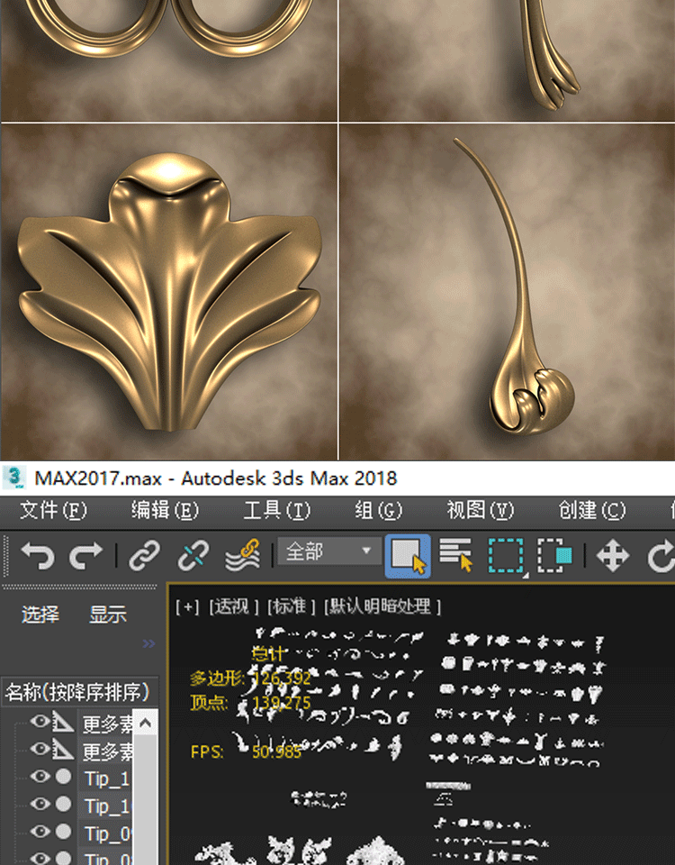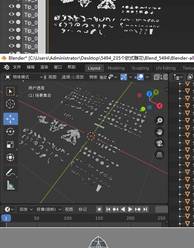 ZBrush笔刷ZBP素材50款欧式建筑花纹装饰雕花Alpha笔刷FBX模型OBJ