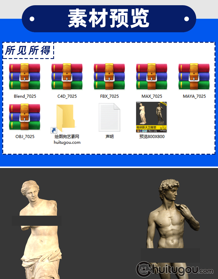3D写实艺术雕塑模型C4D大卫Blender维纳斯MAX博物馆OBJ素材源文件
