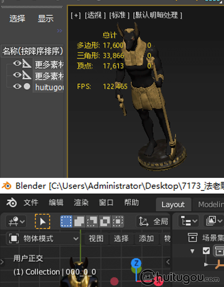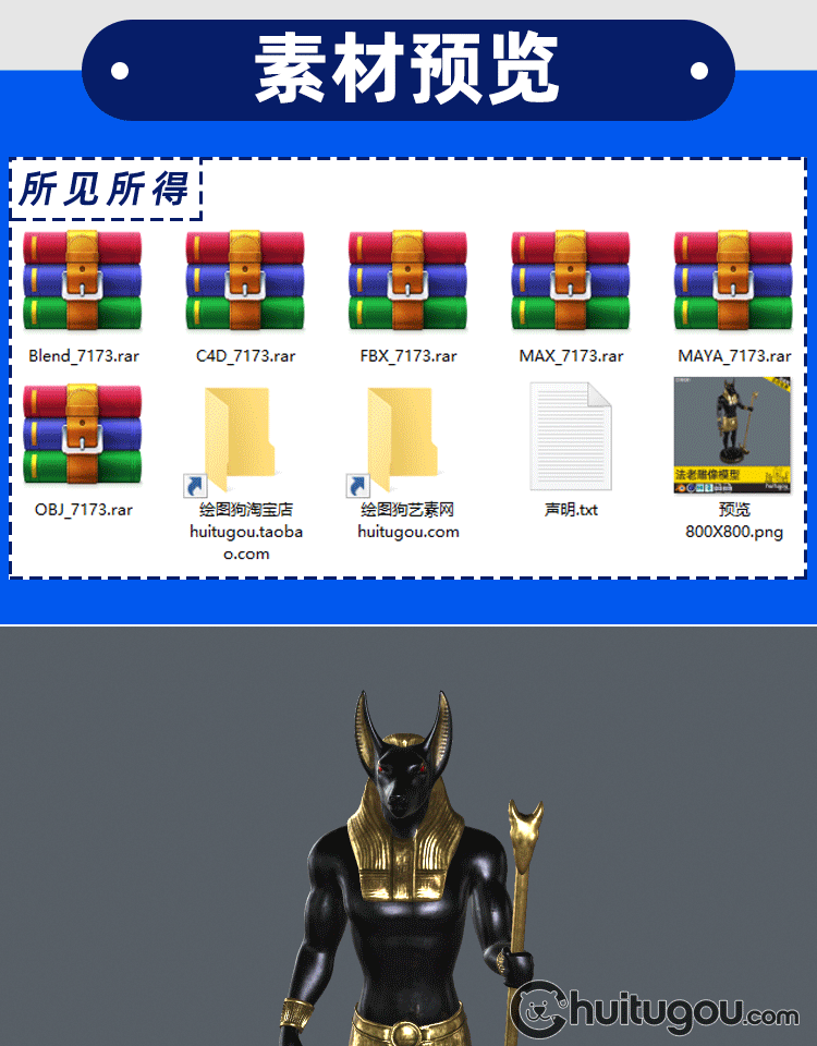 C4D写实PBR法老雕像3D模型Blender雕塑MAX三维建模渲染FBX素材OBJ