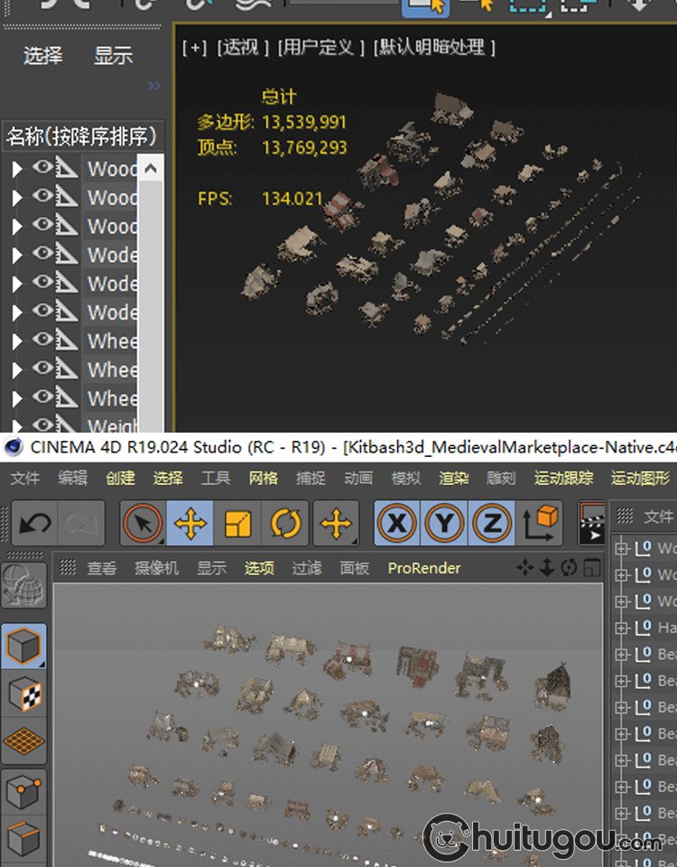 C4D中世纪风格木屋MAYA低面写实PBR古代建筑模型FBX建模渲染素材