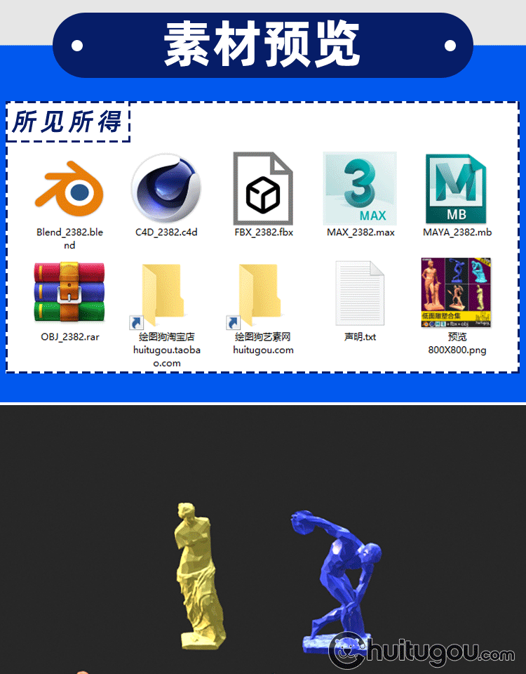 低面卡通3D人物人体雕塑C4D经典雕像维纳斯Blender思想者OBJ素材