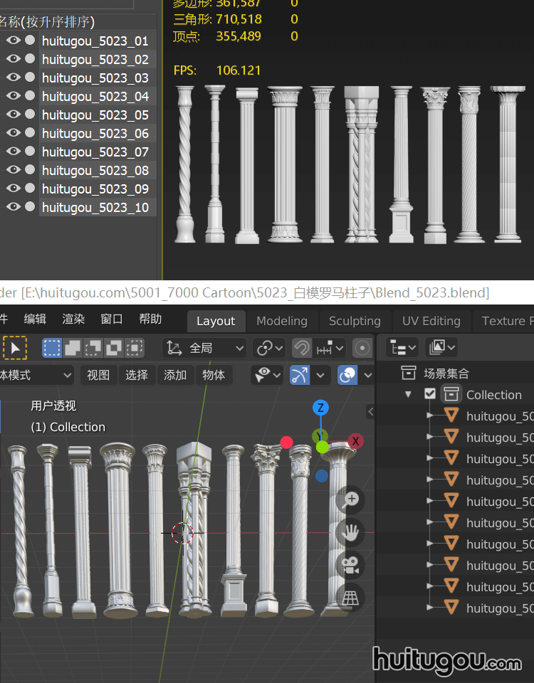 10款 罗马柱子Blend欧式建筑装饰柱模型C4D FBX OBJ ZBrush 素材