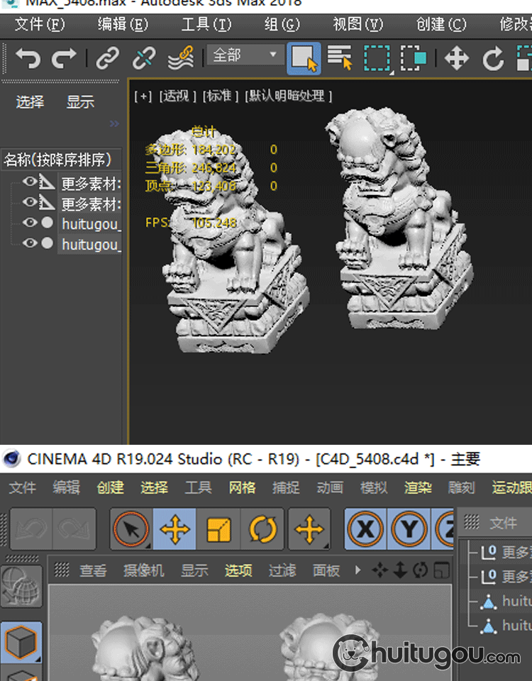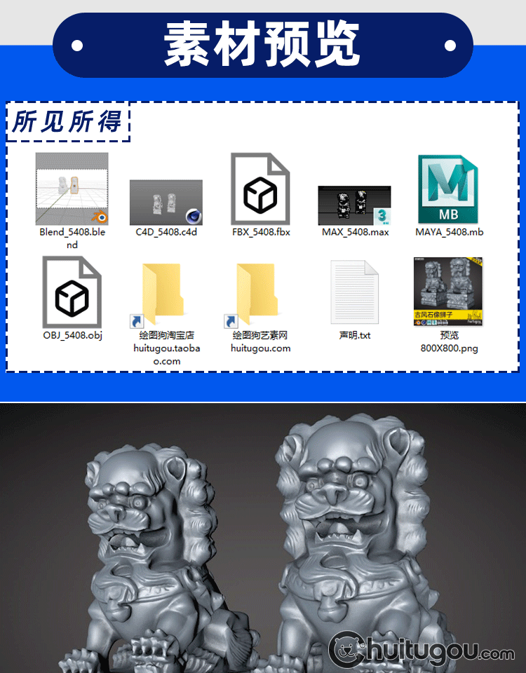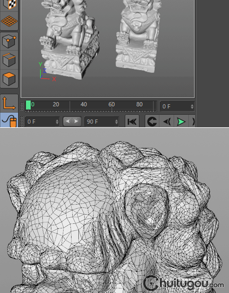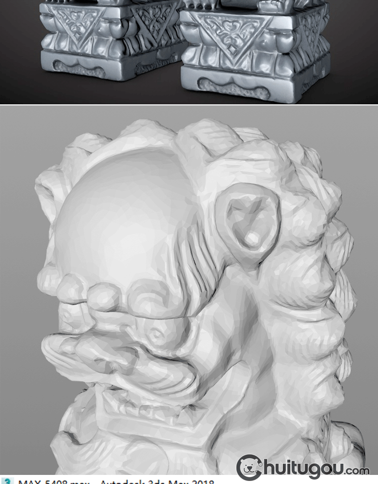 中国风狮子石像模型C4D中模雕刻镇宅石狮MAX素材OBJ犀牛nomad可用