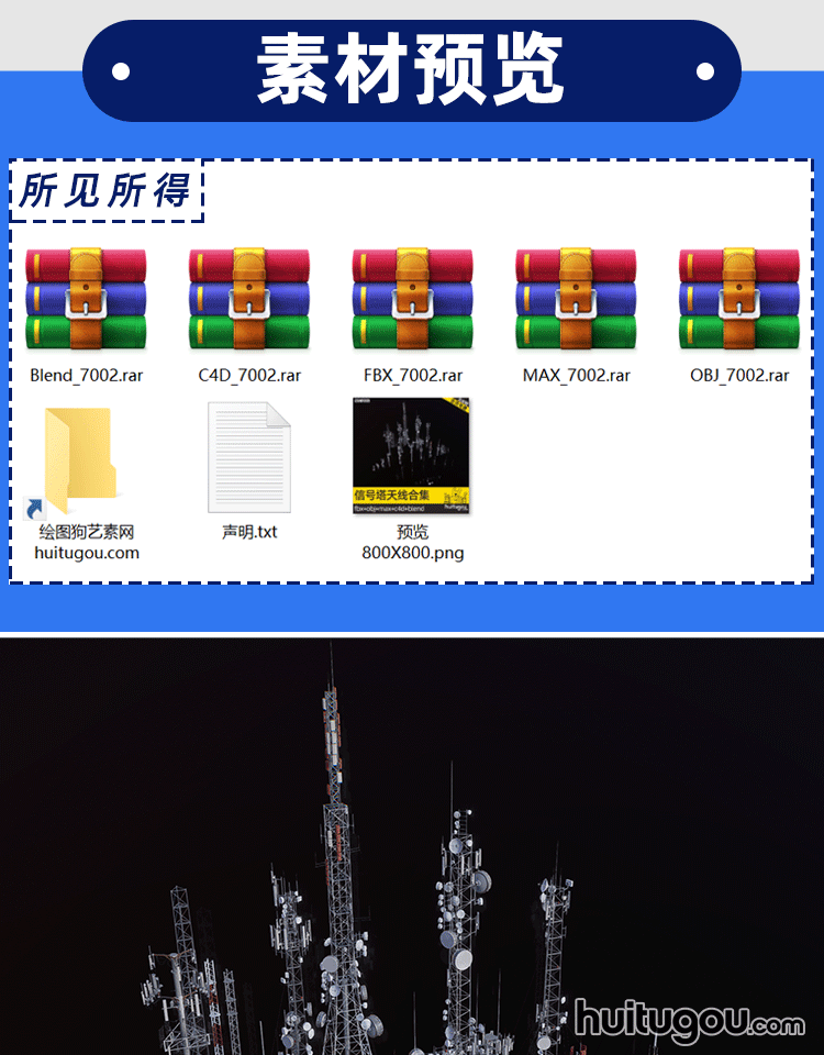 PBR流程 天线信号塔合集Blend卫星工业电线蜂窝塔C4D FBX OBJ素材
