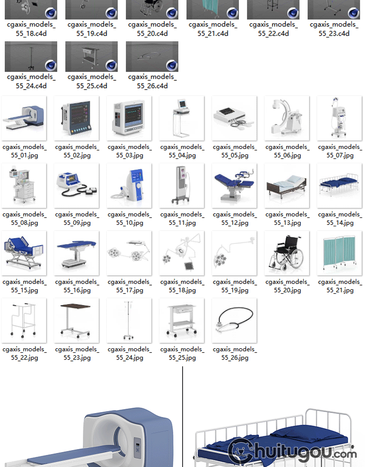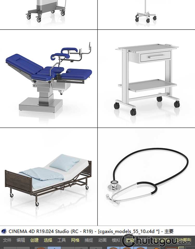 CGAXIS Medical[医疗设备]医院检测器械轮椅床3D模型C4D素材max