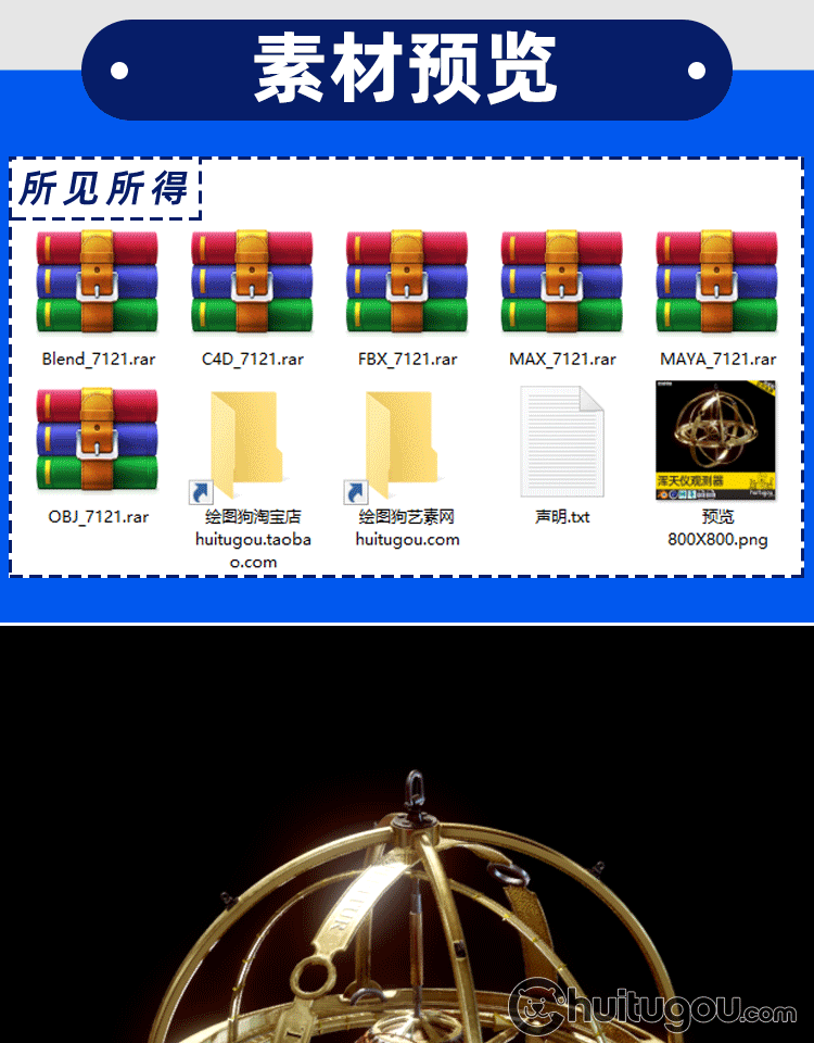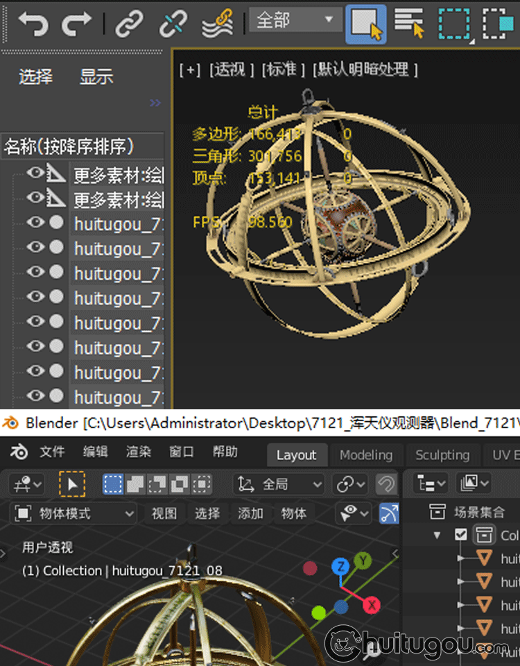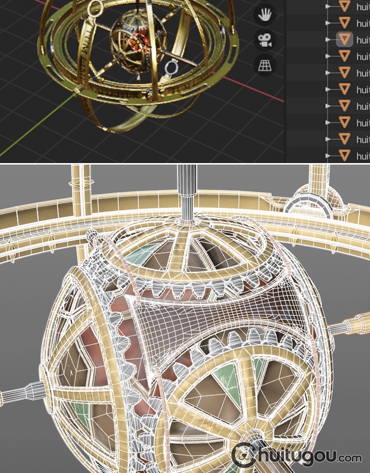 Blender浑天仪时间机器模型C4D蒸汽朋克仪器FBX建模设计素材OBJ
