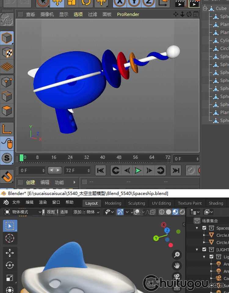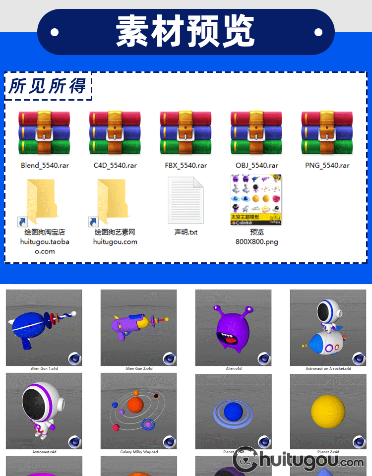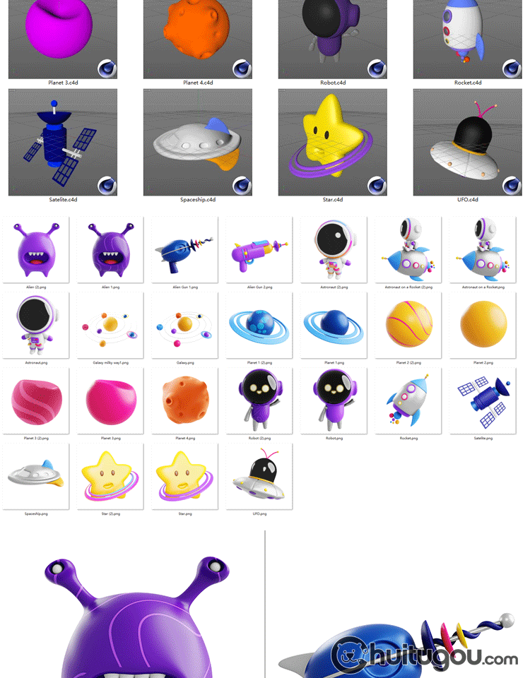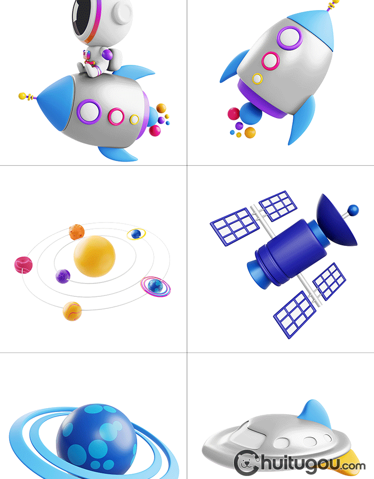 C4D宇宙宇航员太空飞船漫游星球主题blend模型3D素材OBJ附png图标