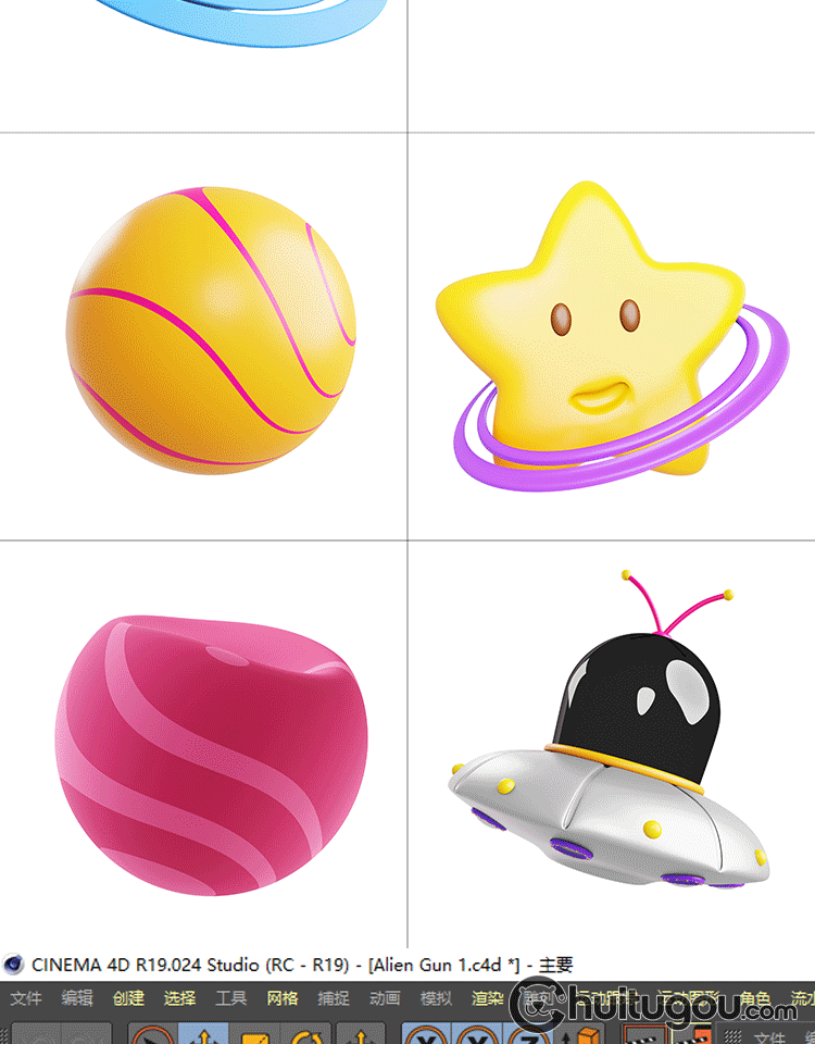 24个空间太空宇宙飞船基础白模C4D模型3D建模渲染素材FBX格式OBJ
