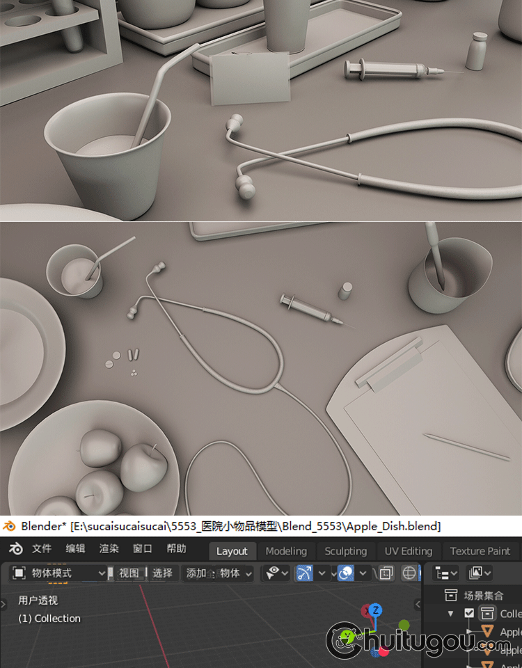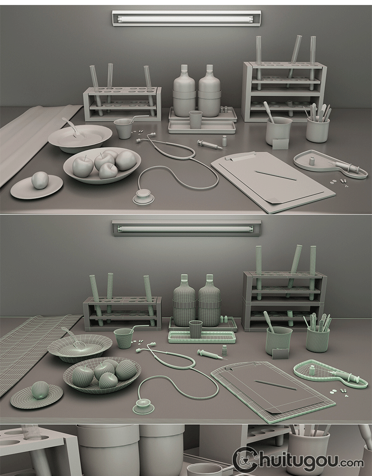 blender医院小物品道具3D模型 生物实验室医疗器械试管fbx素材obj