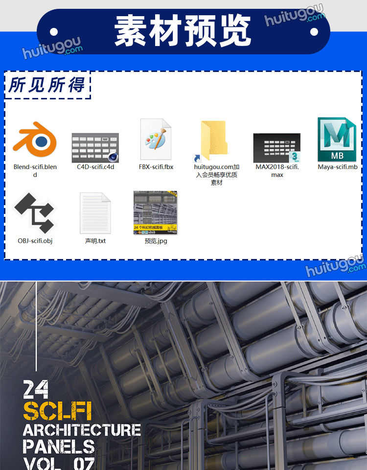 C4D科幻机械面板3D模型Blender科技空间模块FBX格式OBJ素材源文件