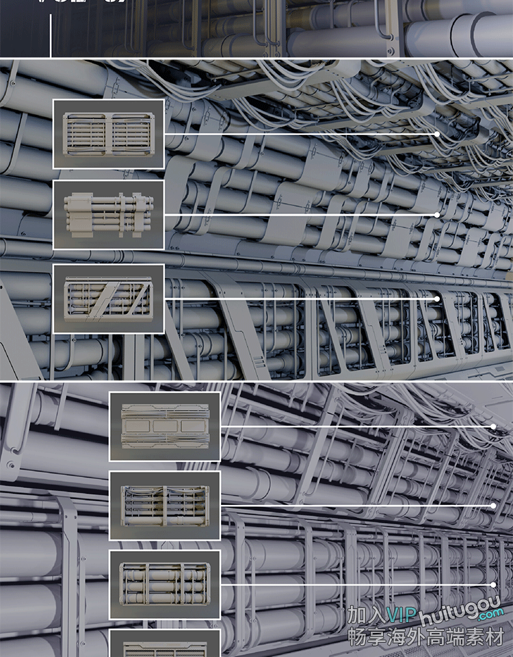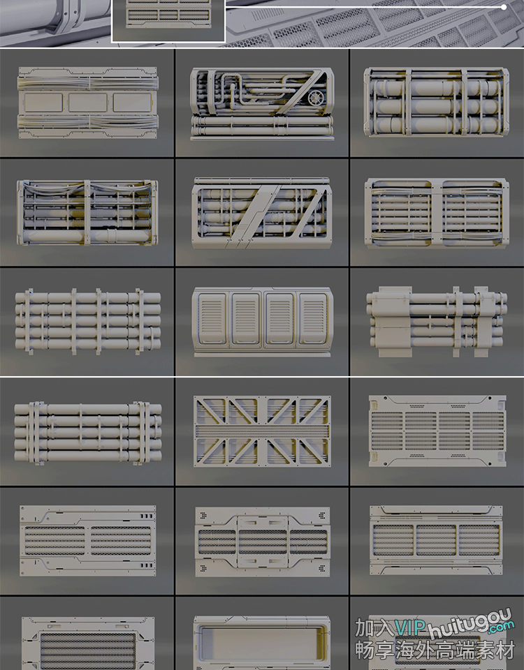 MAYA未来科幻建筑机械面板3D模型C4D通风系统模块Blender建模素材