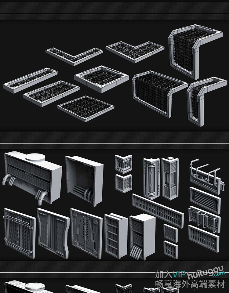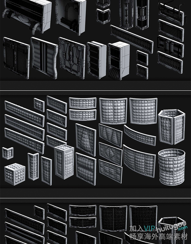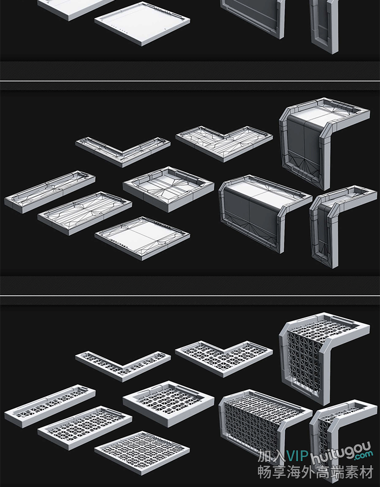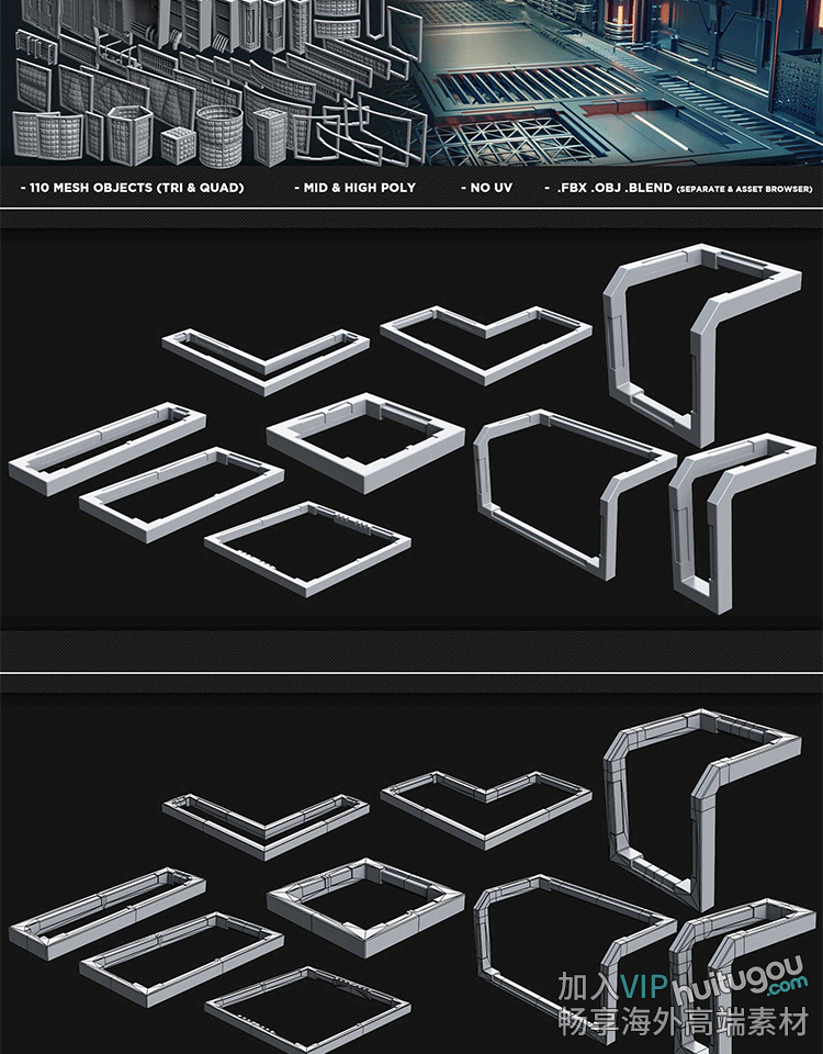 3D未来科幻面板模型墙壁地板布料Blender建模设计素材FBX格式OBJ