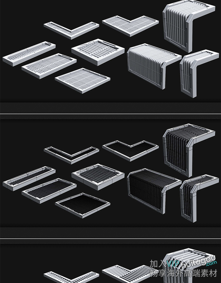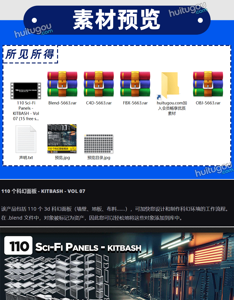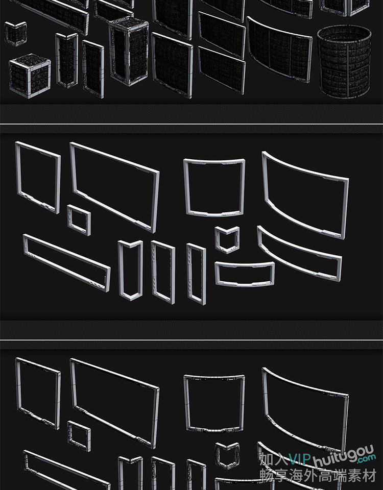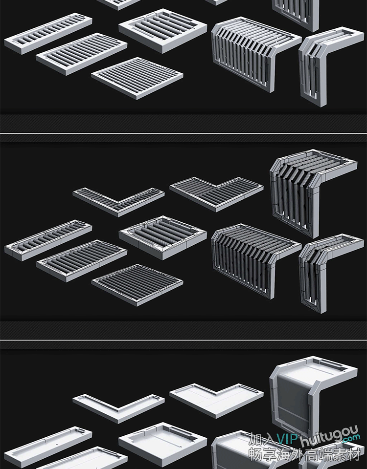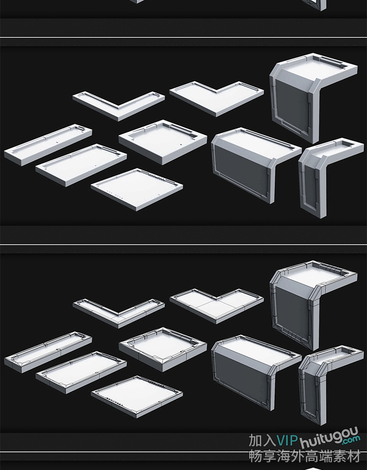 3D未来科幻面板模型墙壁地板布料Blender建模设计素材FBX格式OBJ