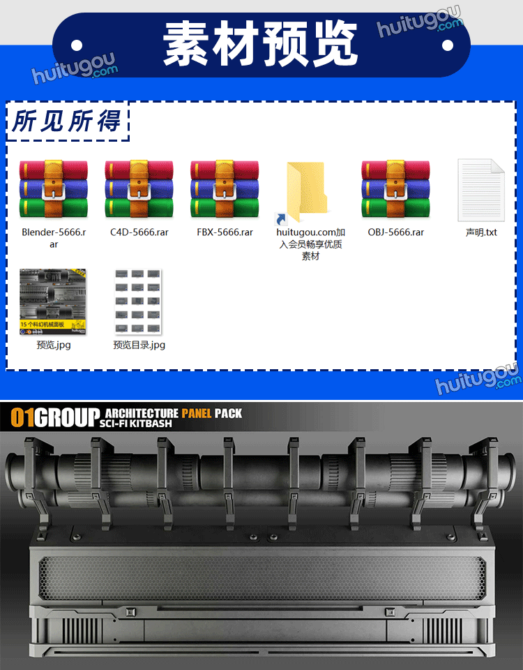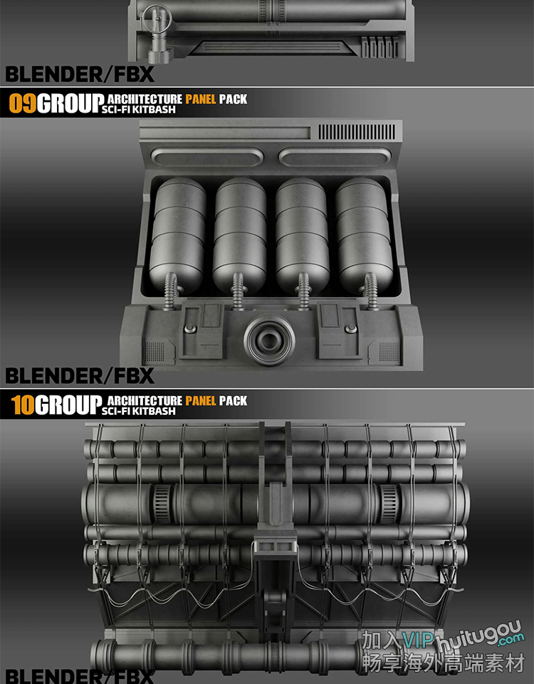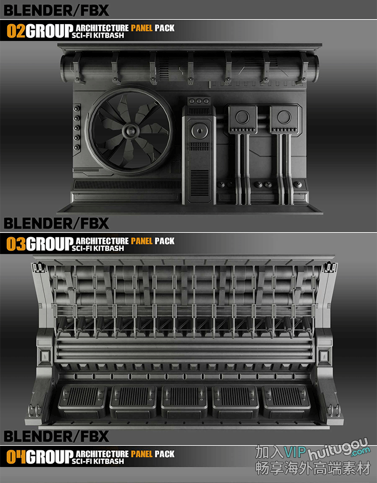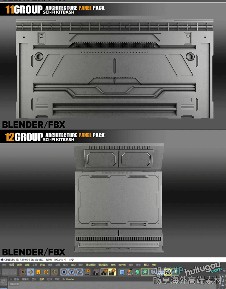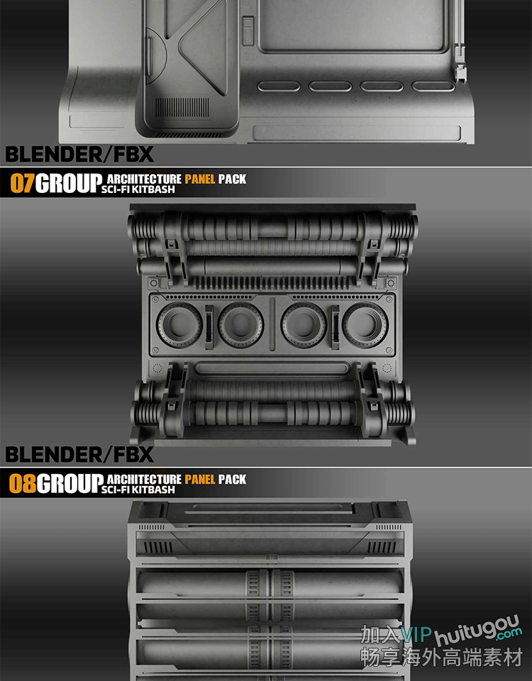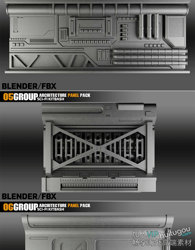 C4D科幻机械面板3D模型Blender科技空间模块FBX格式OBJ素材源文件