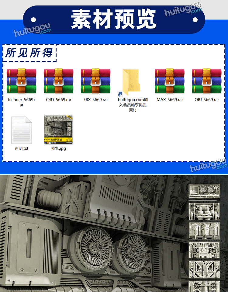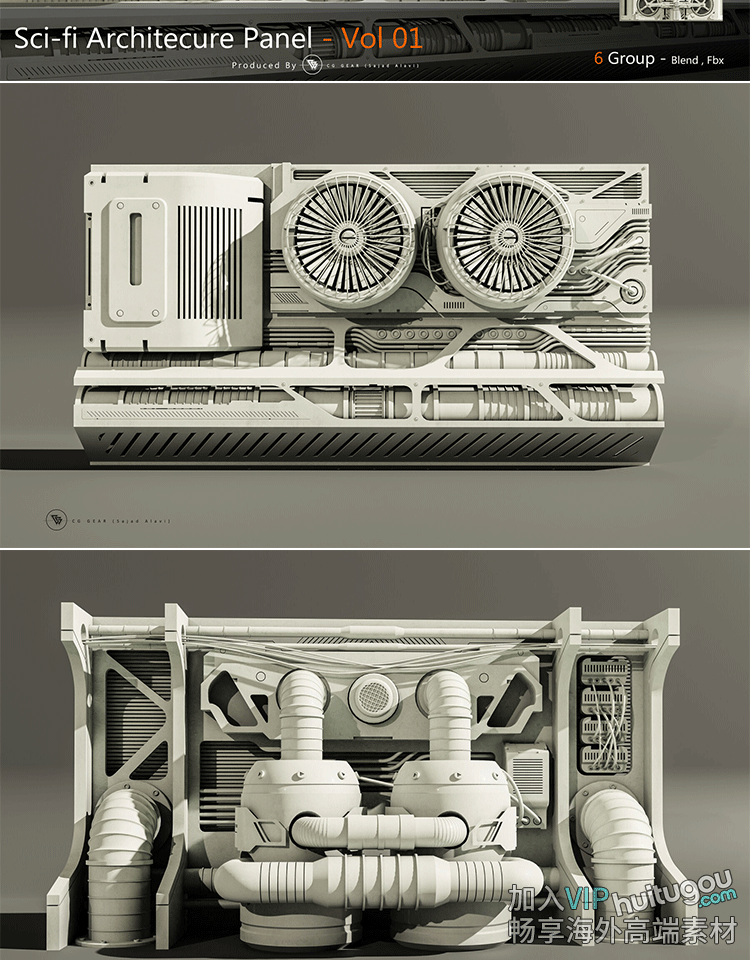 3D未来科幻面板模型墙壁地板布料Blender建模设计素材FBX格式OBJ