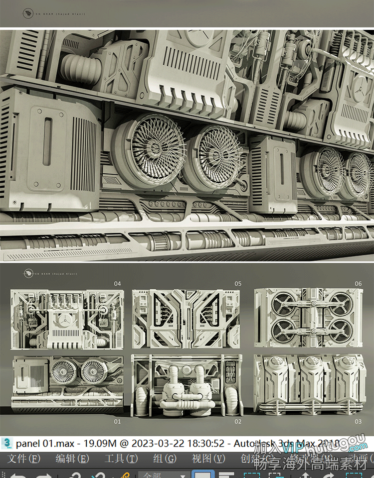 MAYA未来科幻建筑机械面板3D模型C4D通风系统模块Blender建模素材