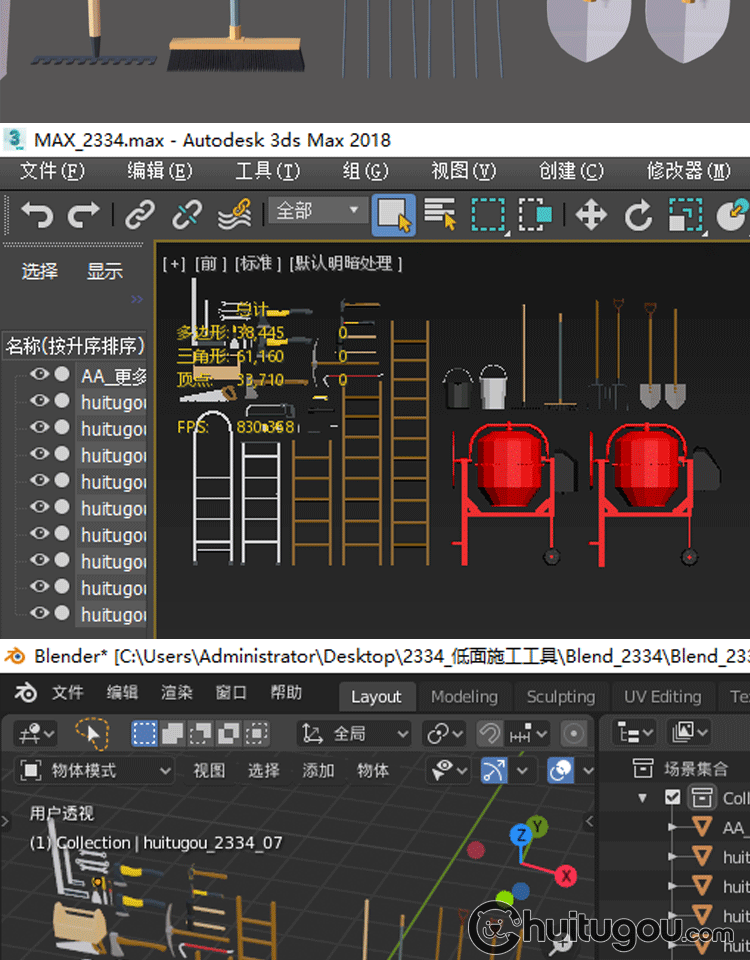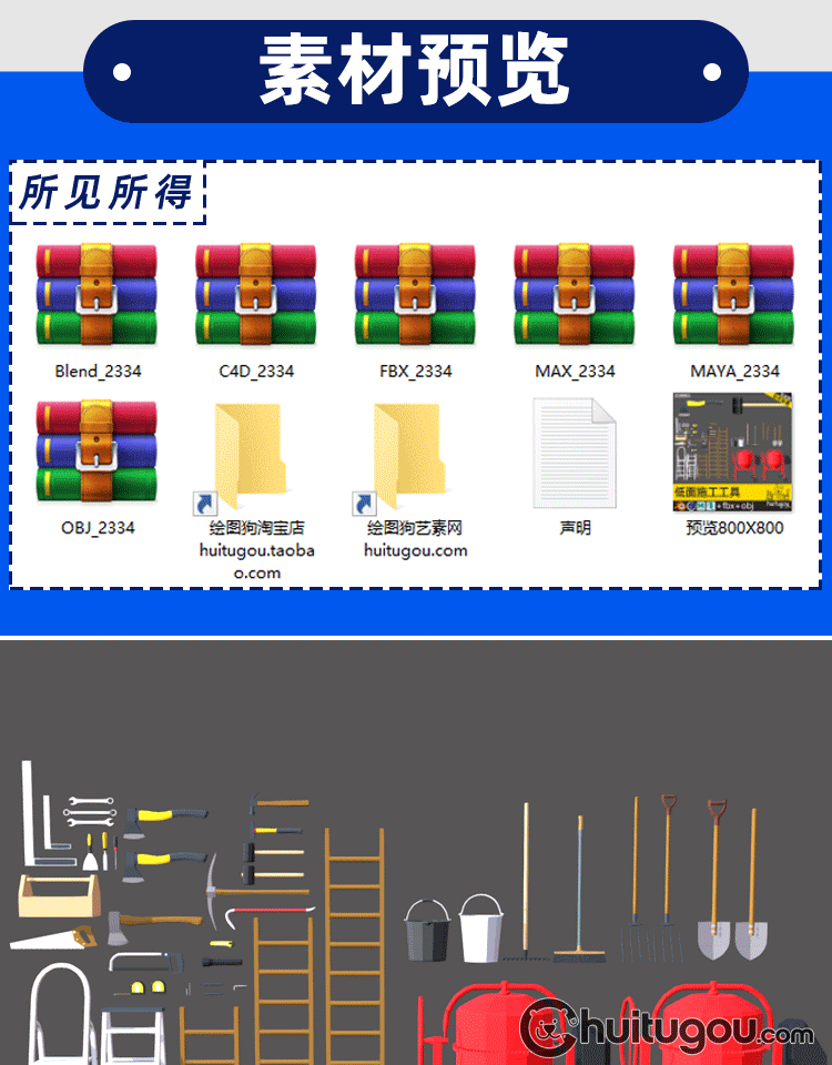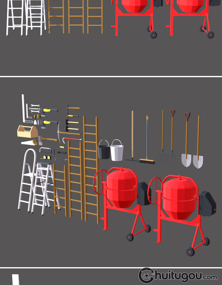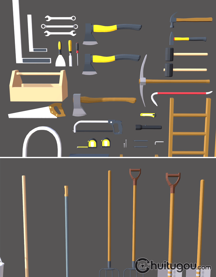 低面工具包C4D常用工具模型Blend桶铲耙锤子扳手锯子MAYA素材OBJ