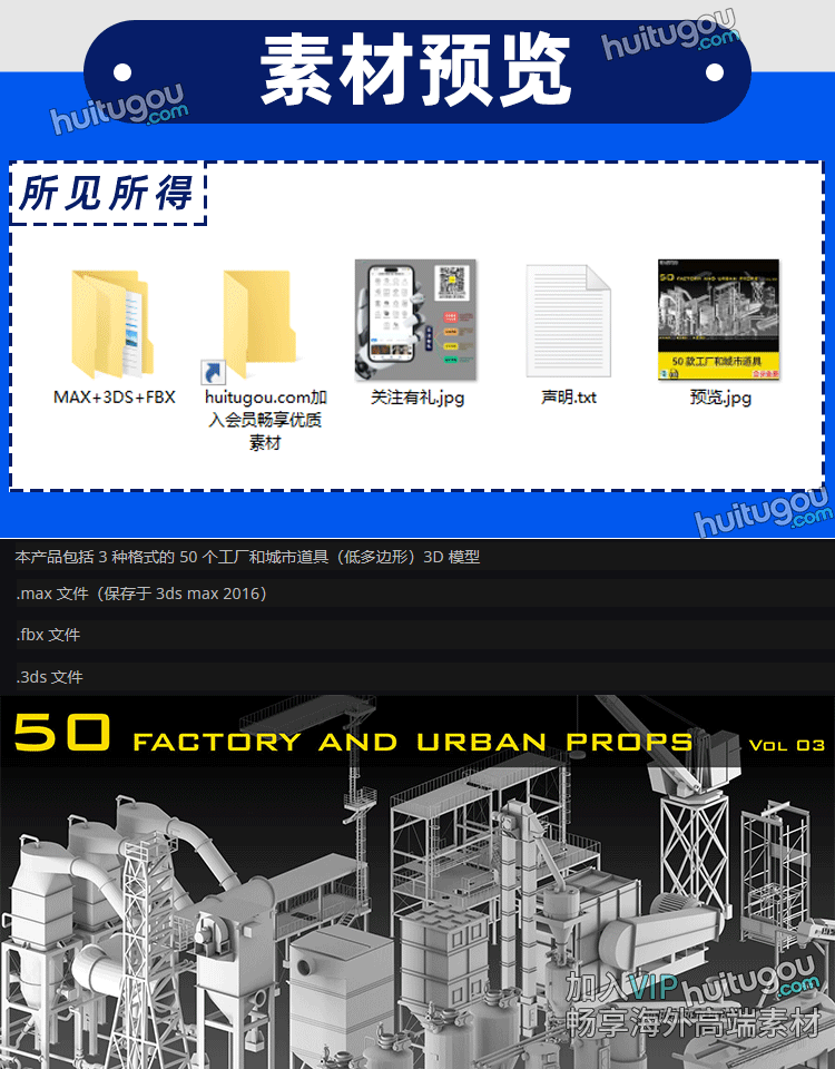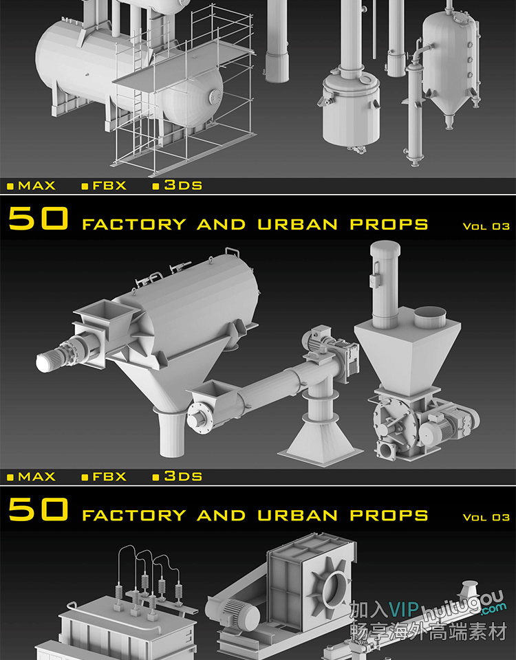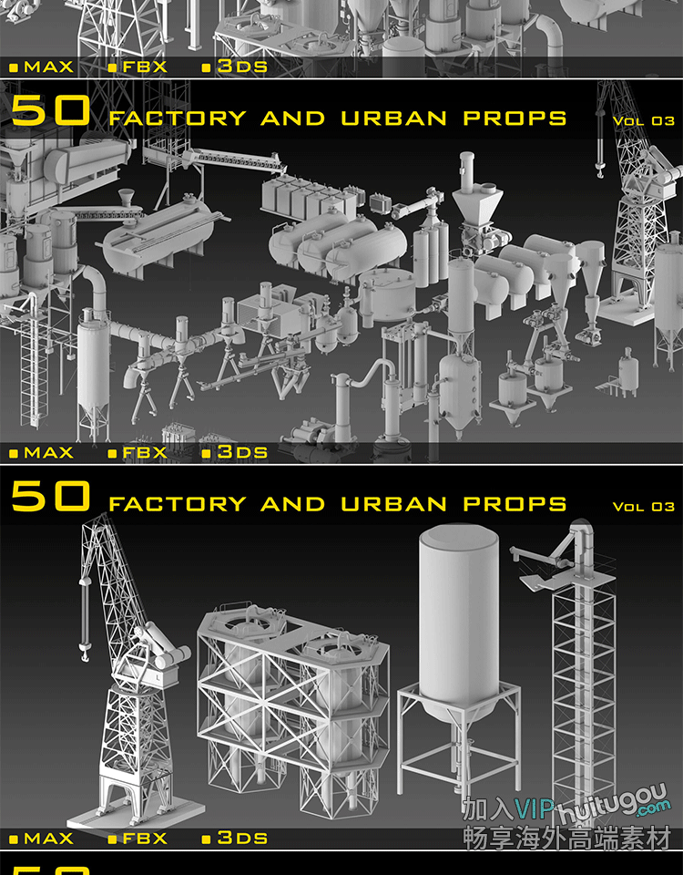 50款MAX工厂城市工业器械道具基础网格白模3D模型3DS格式FBX素材
