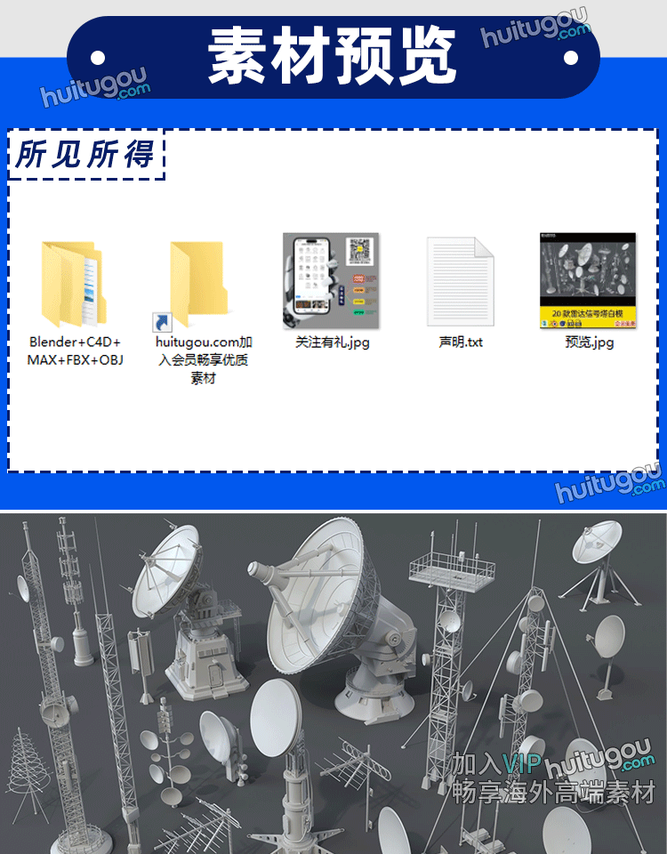 20款雷达信号塔电塔基础网格白模MAX模型Blender建模渲染素材OBJ