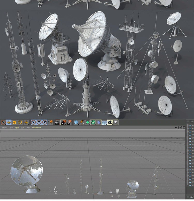 20款雷达信号塔电信通讯塔白模Blender模型C4D建模渲染FBX素材OBJ