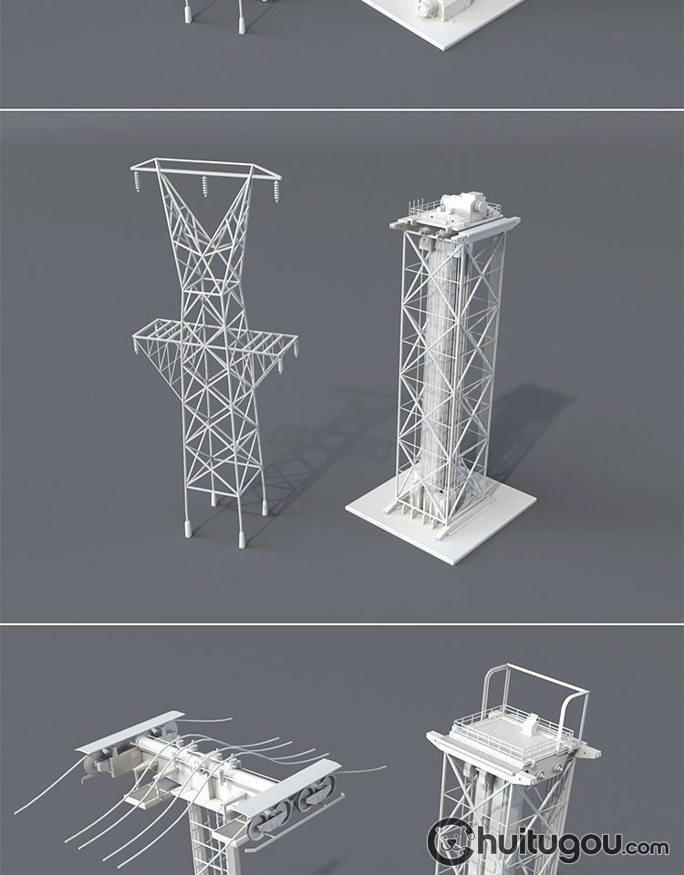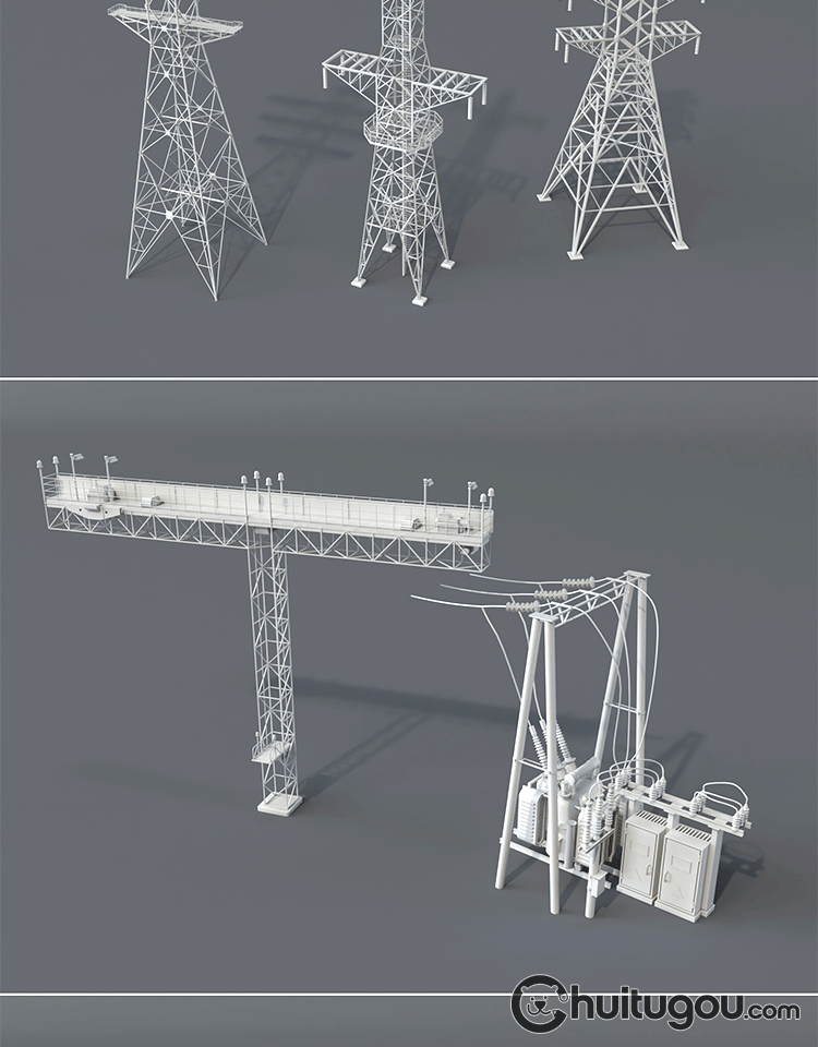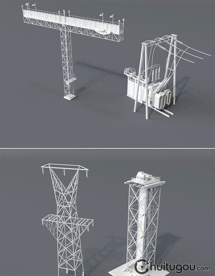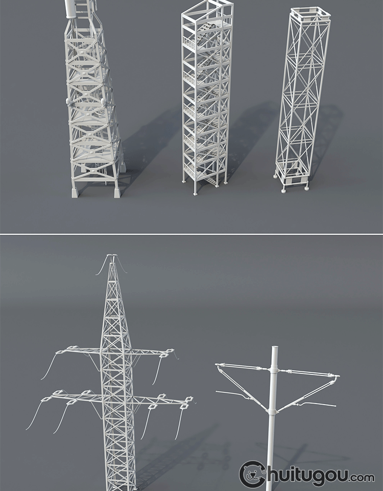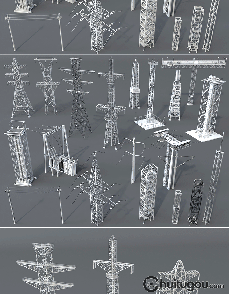 20款3D工业电塔模型C4D电网设备金属架Blender电线杆白模OBJ素材