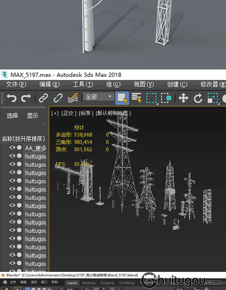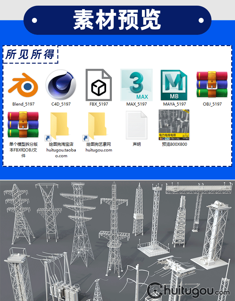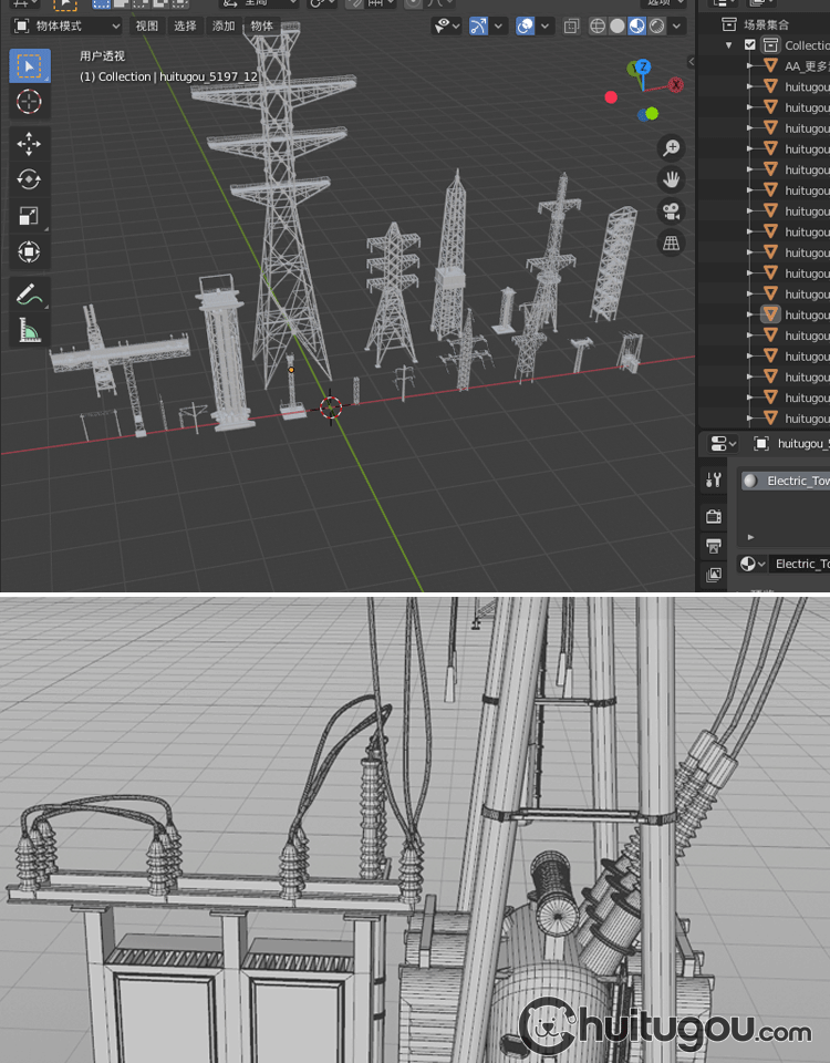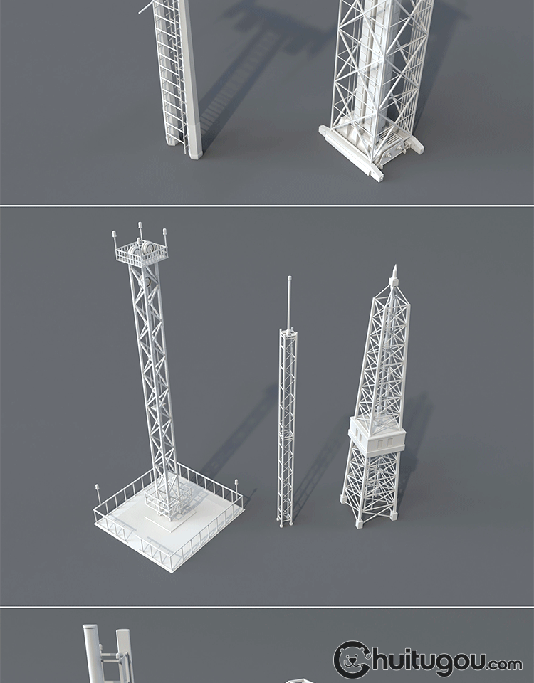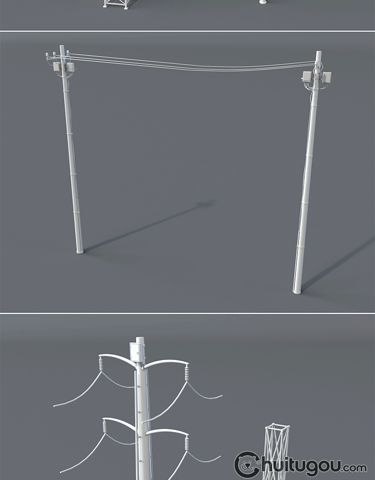 20款3D工业电塔模型C4D电网设备金属架Blender电线杆白模OBJ素材