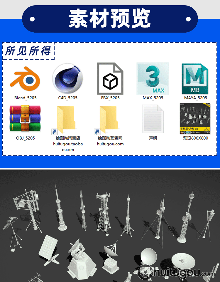 20款 天线模型Blend讯号塔信号接受器发射器卫星信号塔C4D素材OBJ