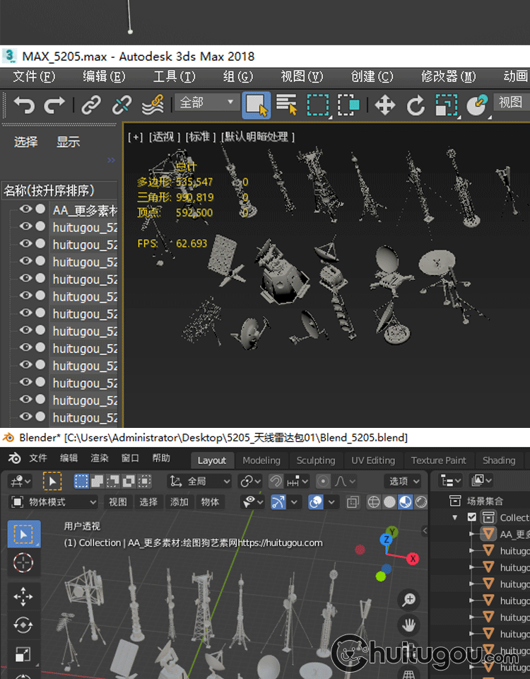 20款3D天线雷达模型MAYA电视天线信号接收器无线电发射MAX素材OBJ